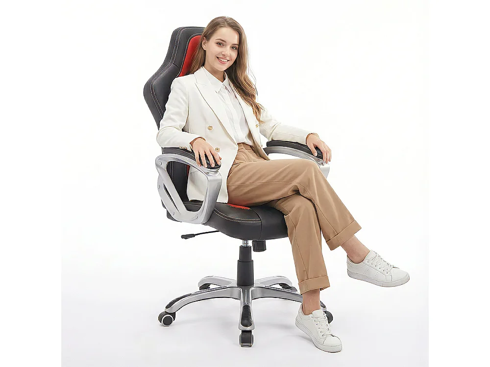 Sedia da gaming Ecopelle nera e rossa