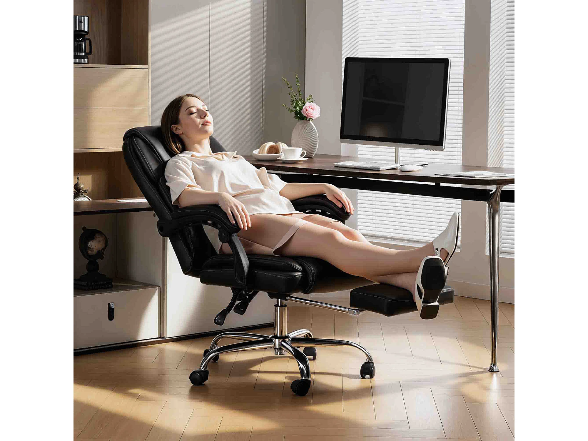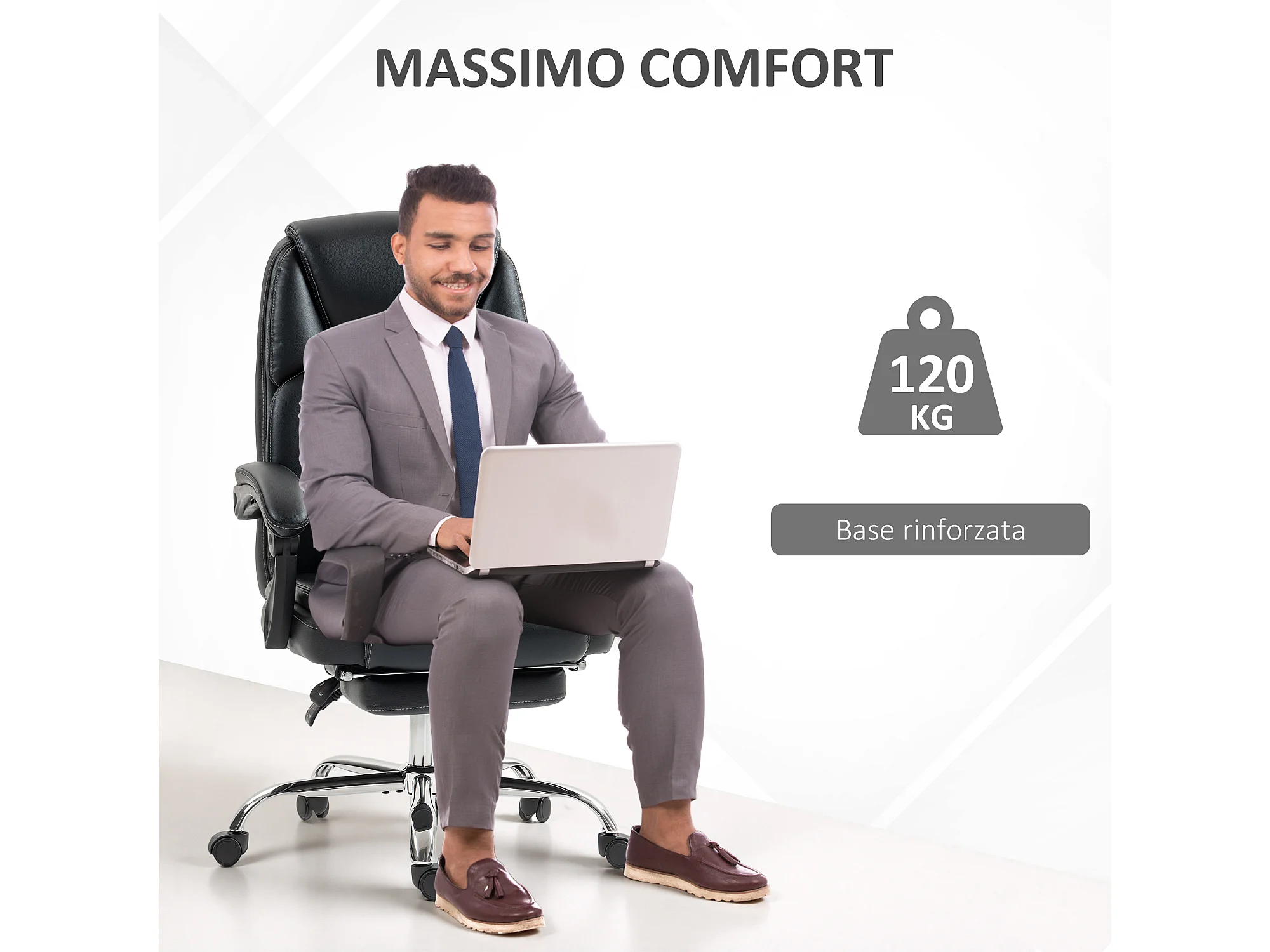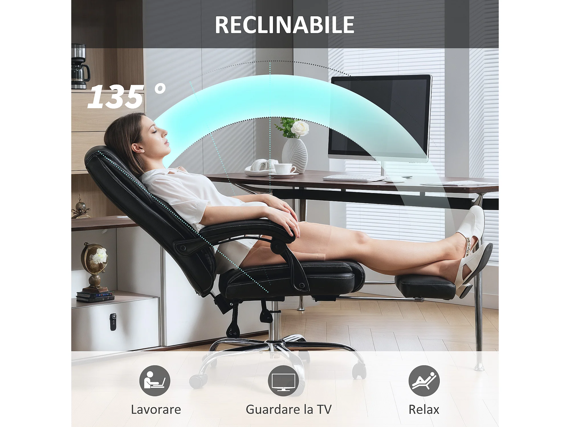 Sedia da ufficio reclinabile con poggiapiedi e imbottitura nero
