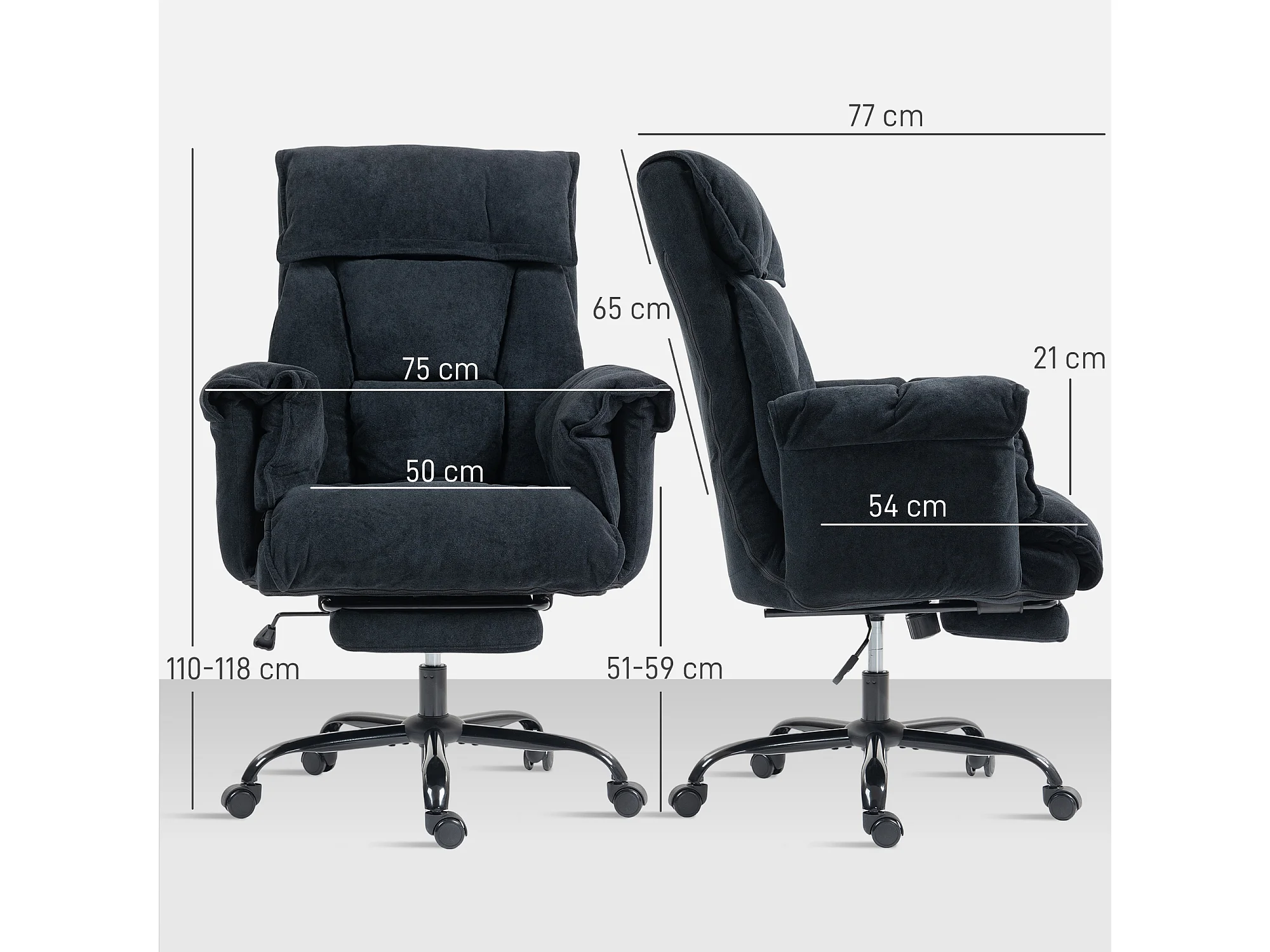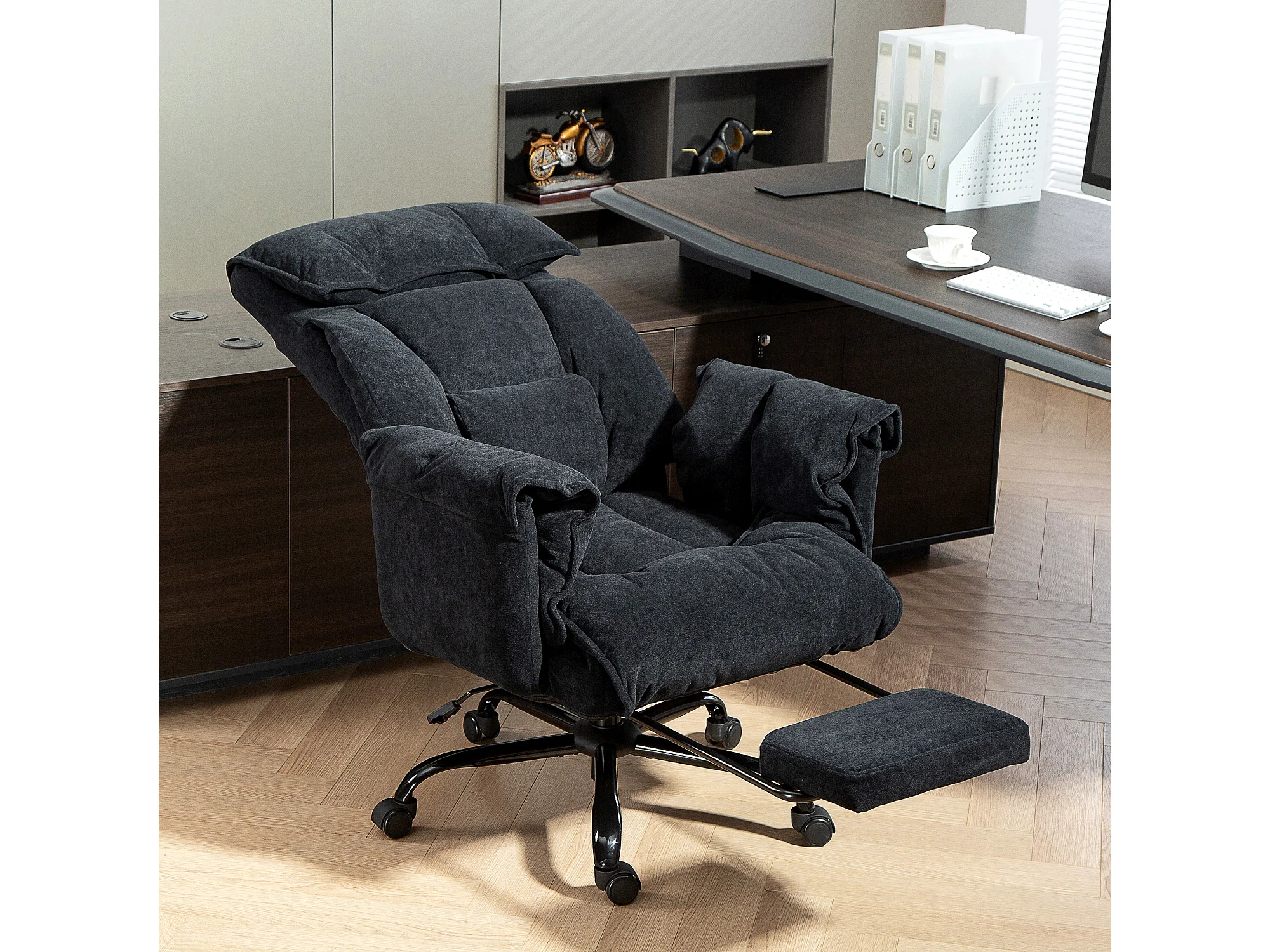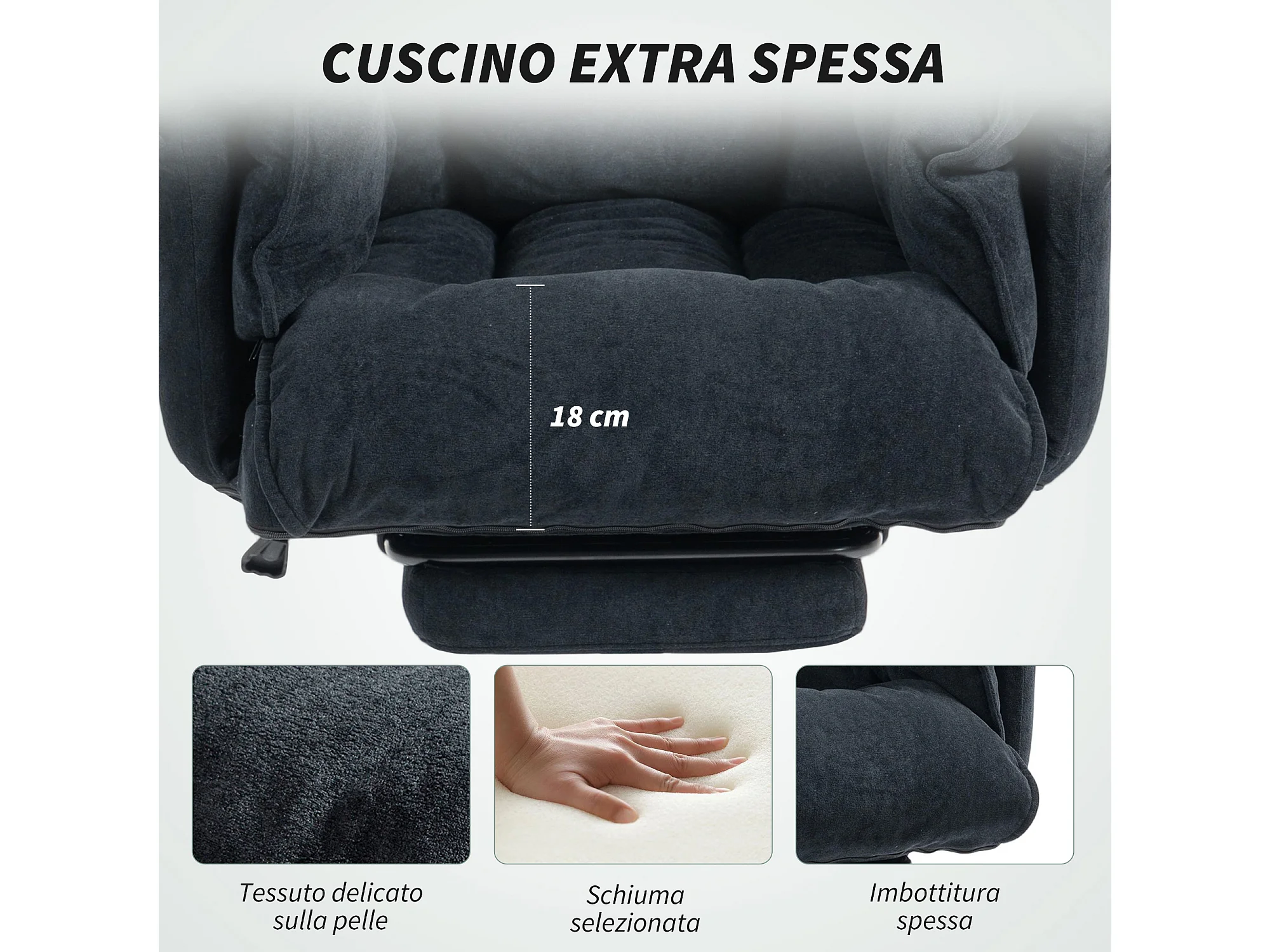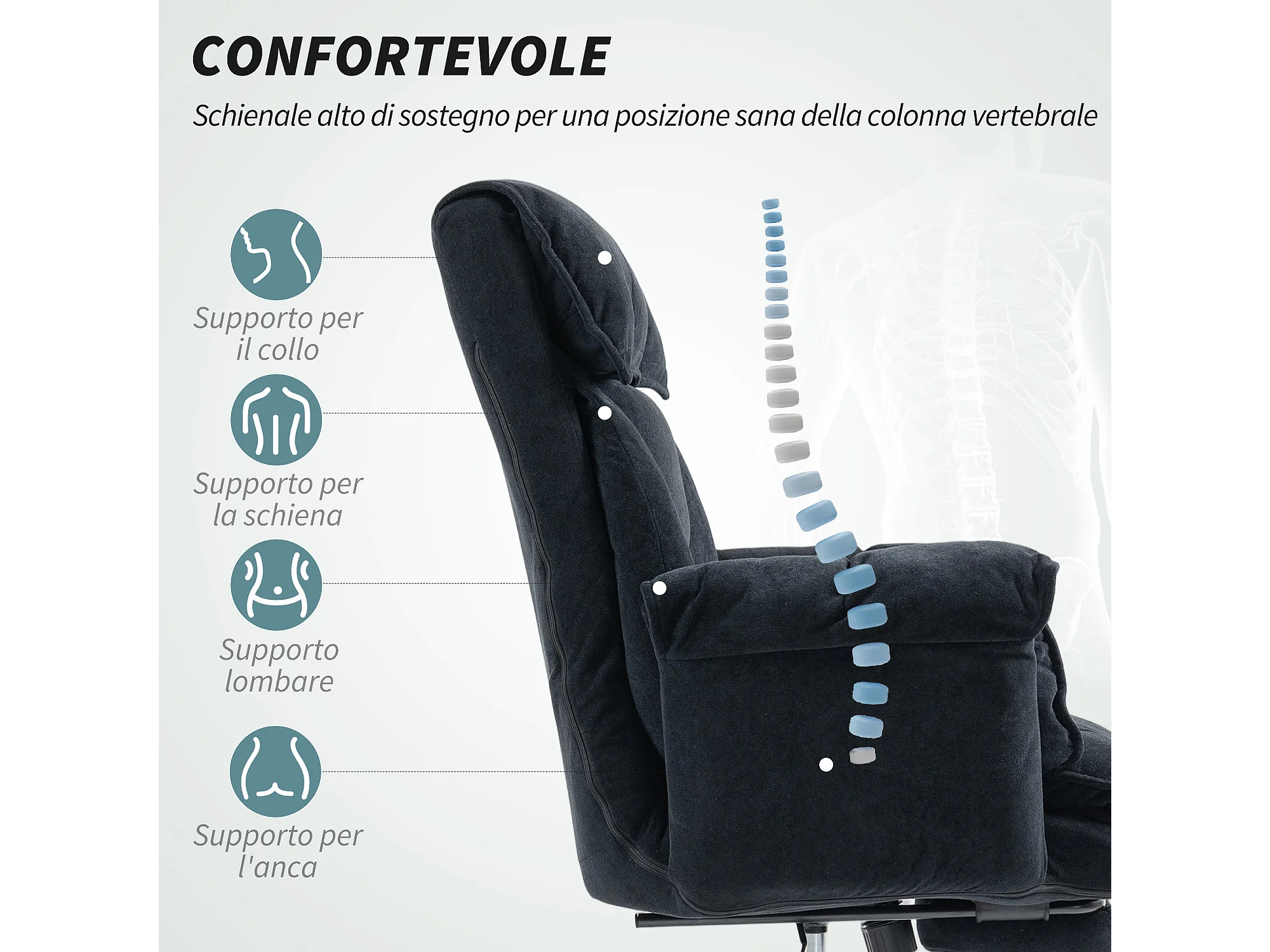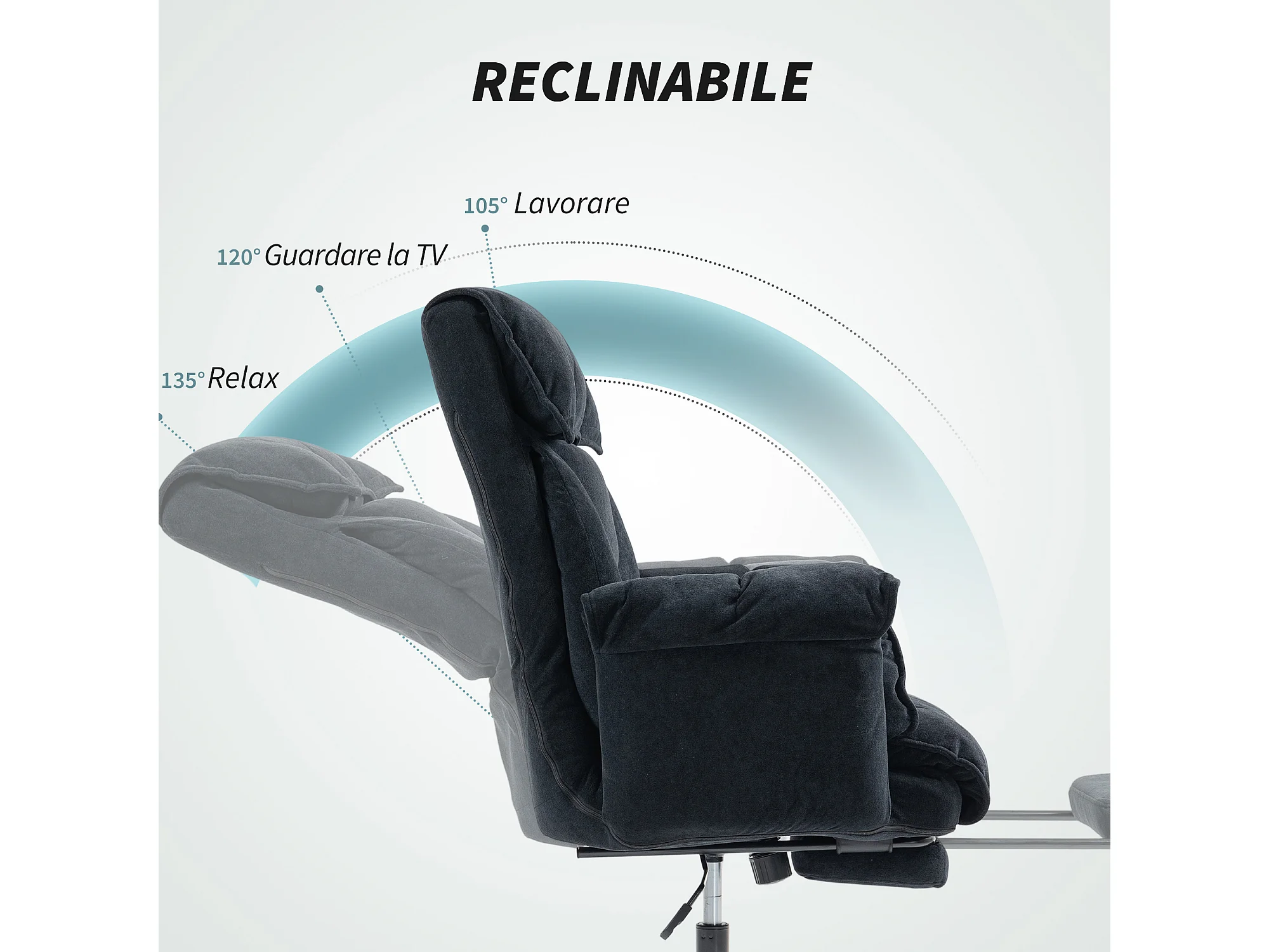 Sedia da ufficio reclinabile con poggiapiedi e schienale alto nero