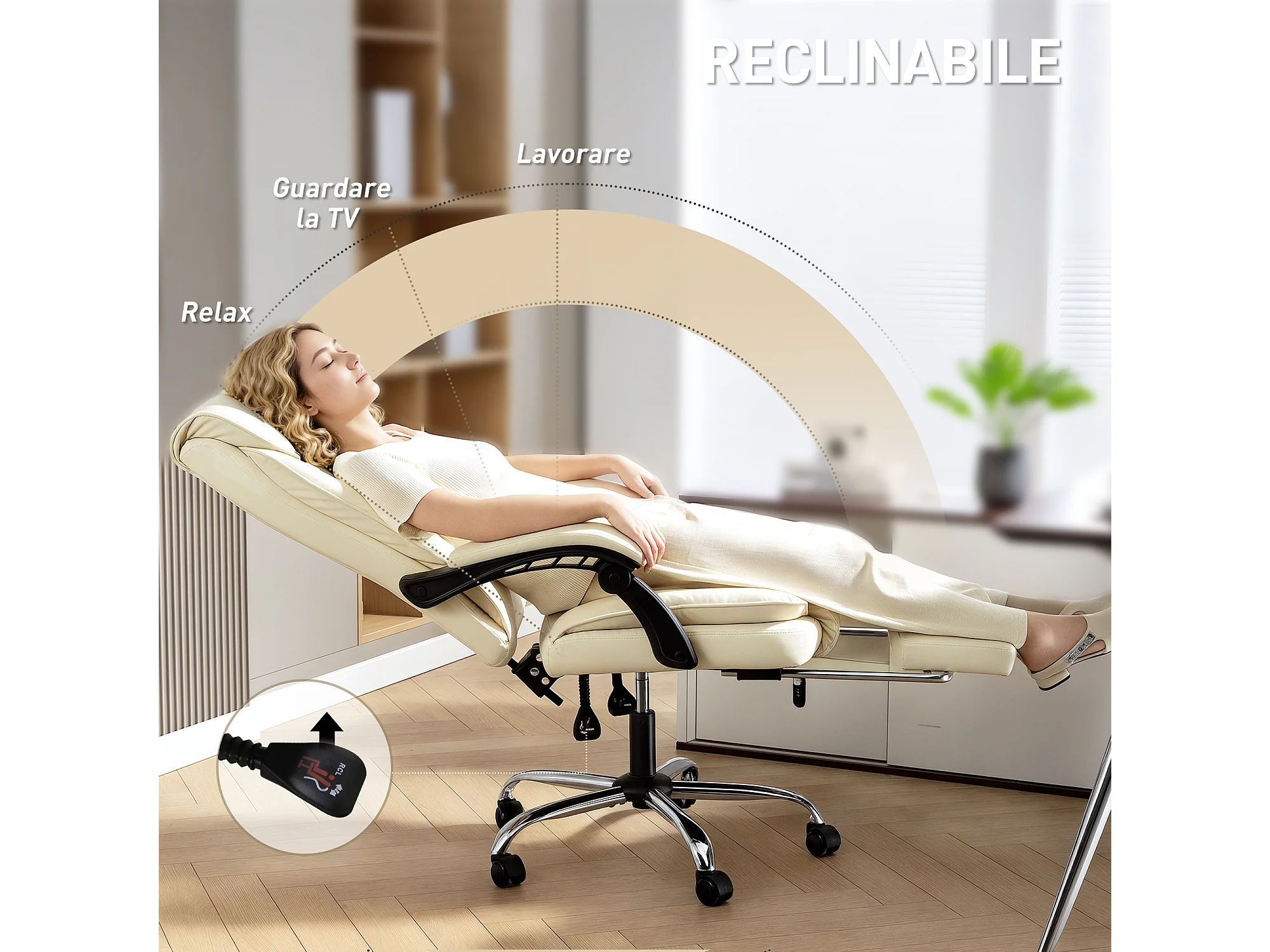 Sedia da ufficio reclinabile con poggiapiedi in finta pelle beige