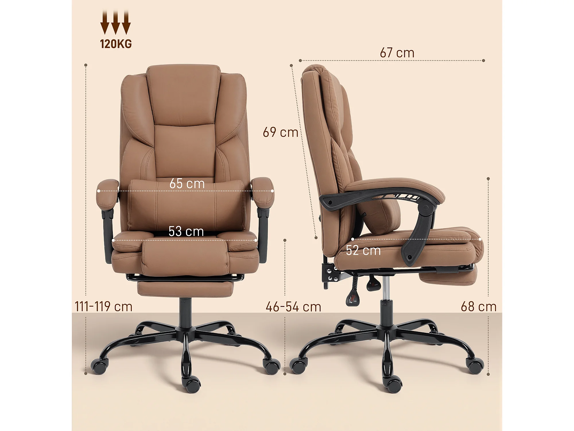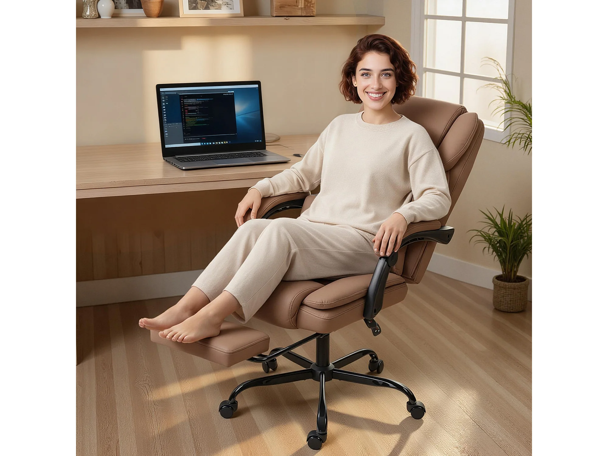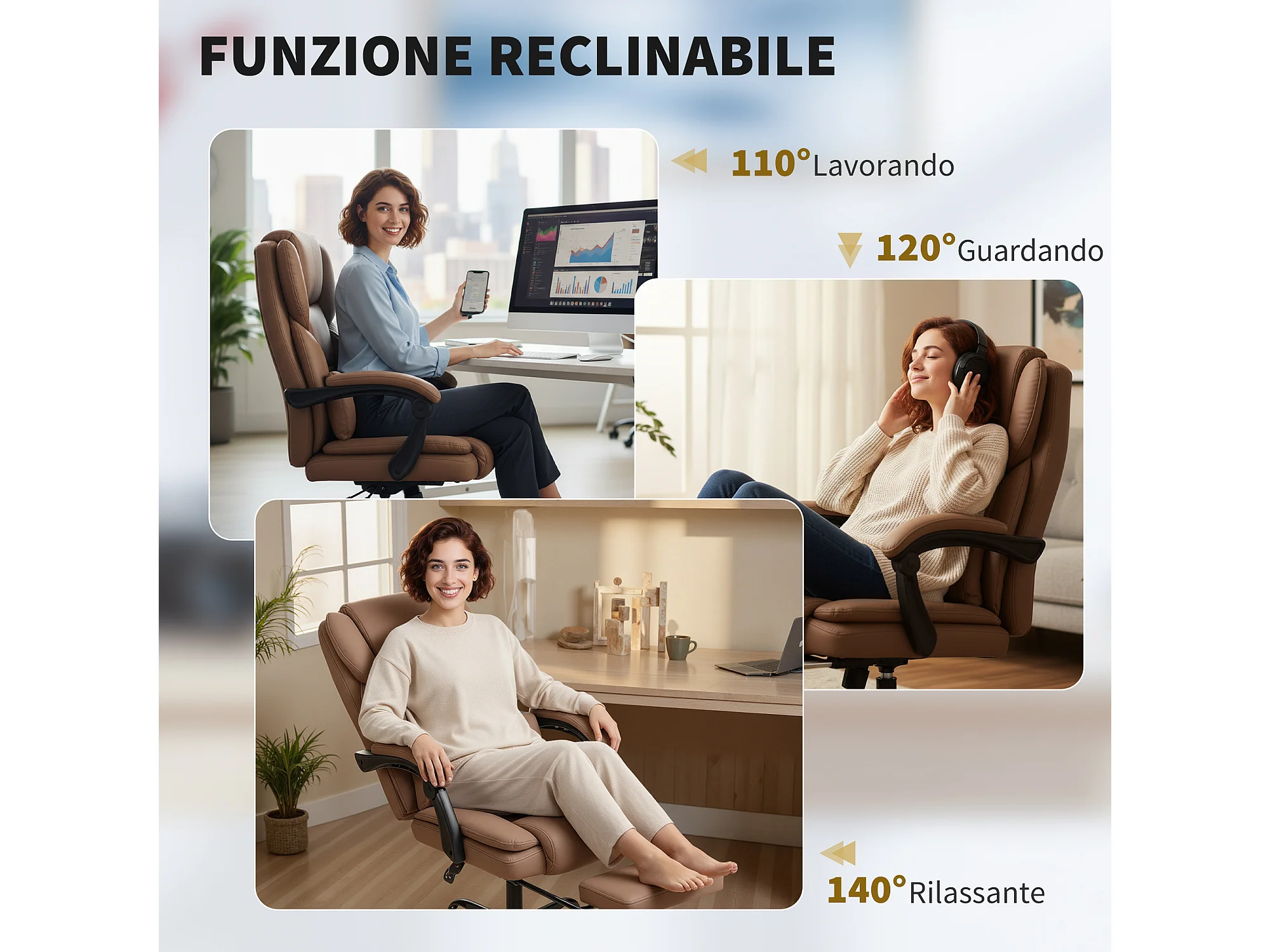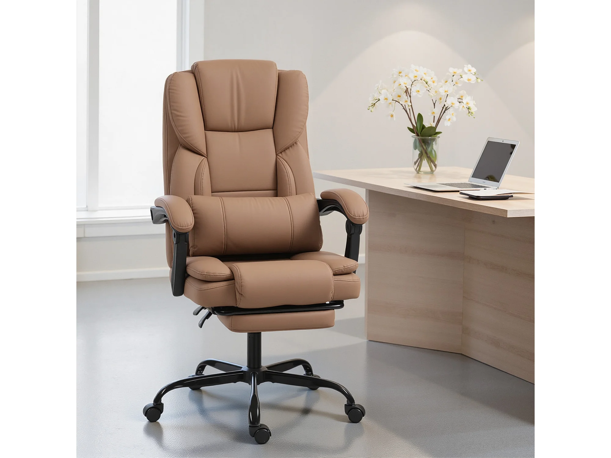 Sedia da ufficio reclinabile con poggiapiedi in finta pelle marrone