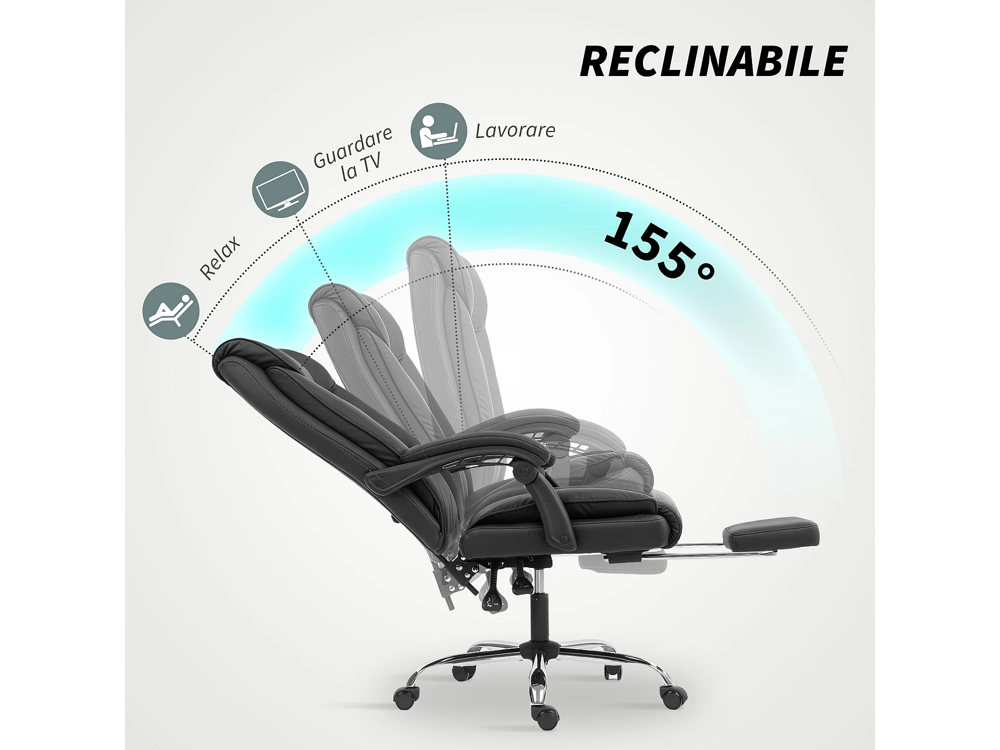 Sedia da ufficio reclinabile con poggiapiedi in finta pelle nero