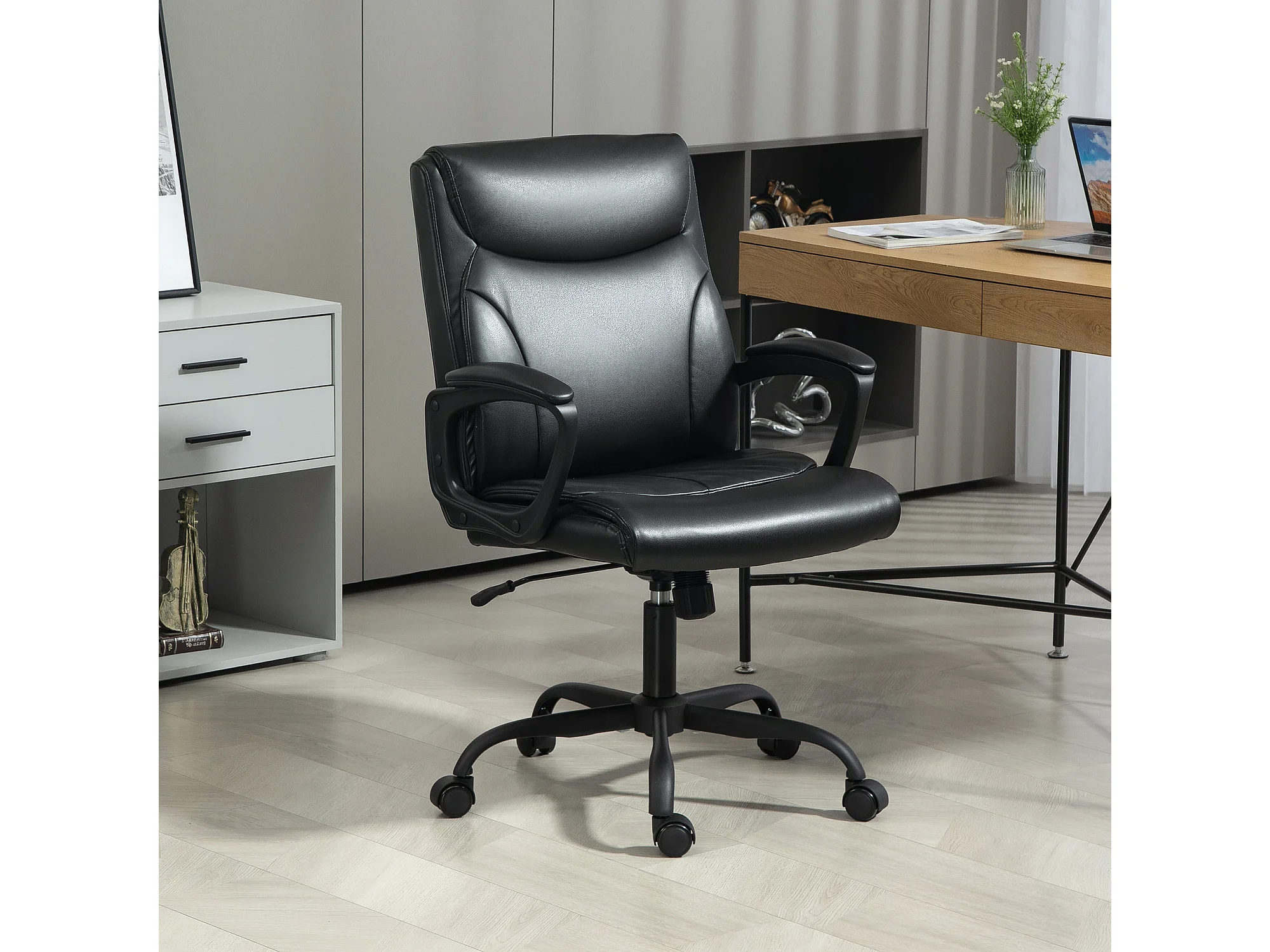 Poltrona da ufficio in similpelle nera altezza regolabile