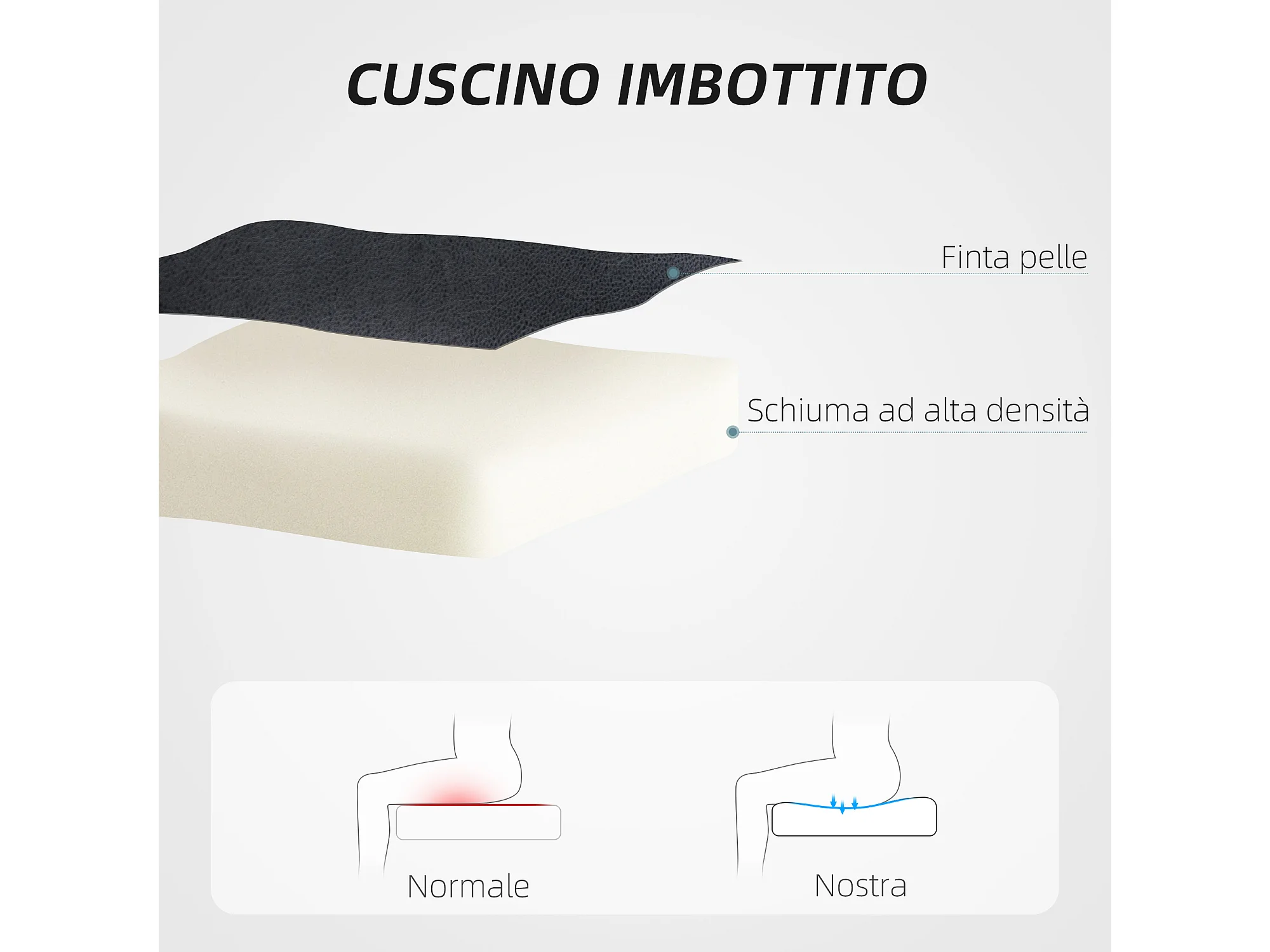 Sedia da ufficio reclinabile e regolabile in finta pelle acciaio nera