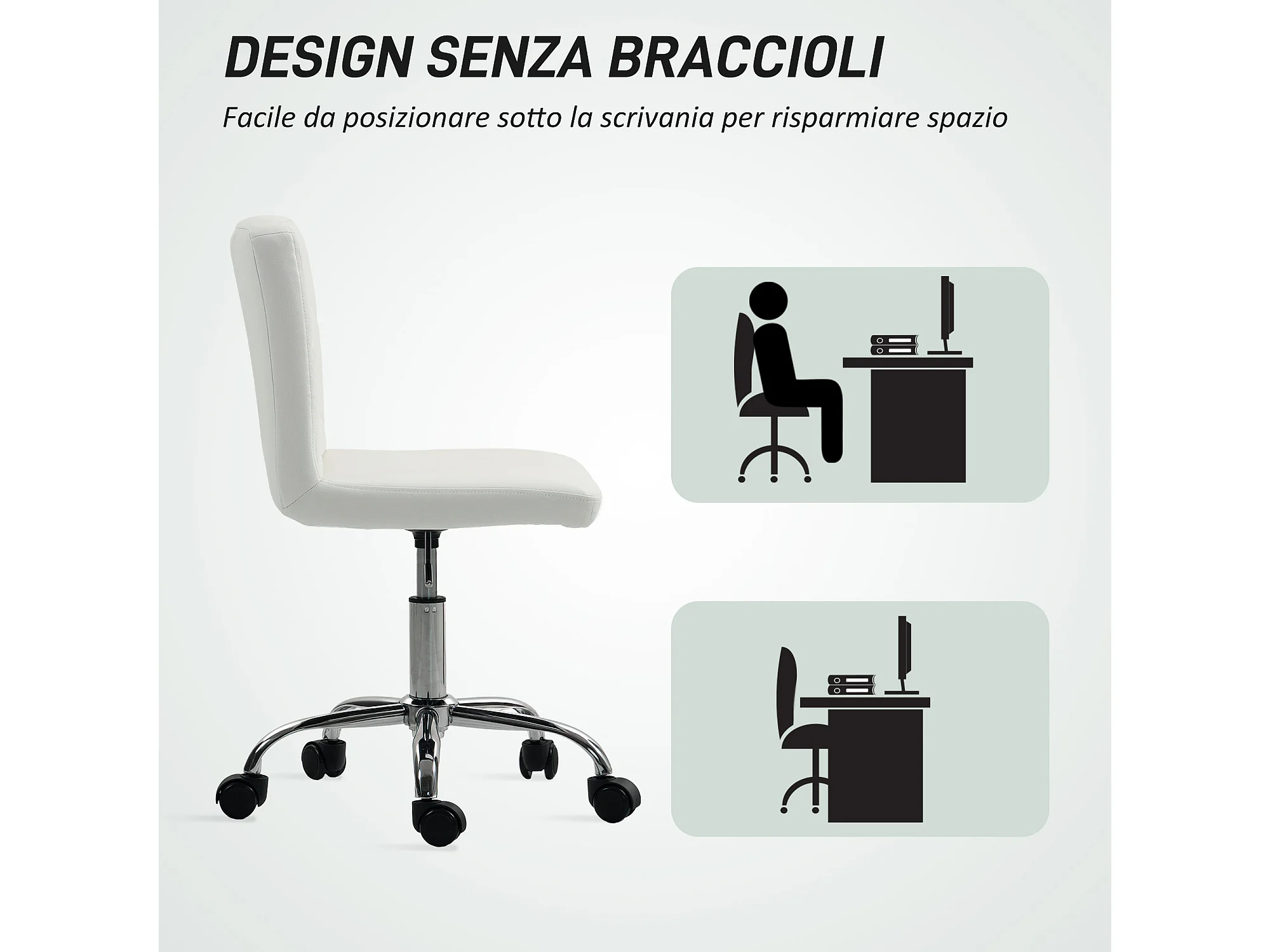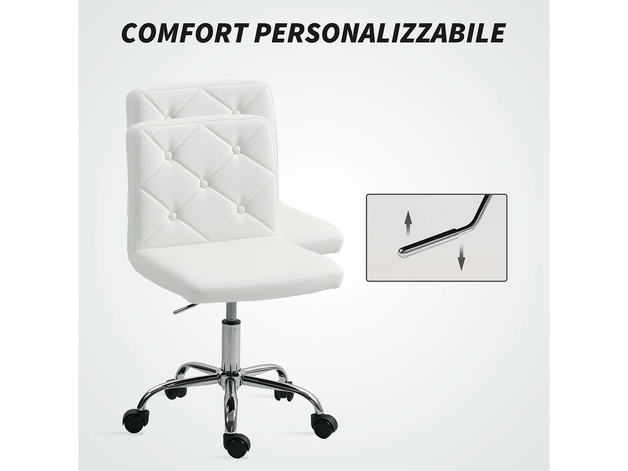 Sedia da ufficio regolabile con rivestimento a bottoni bianco