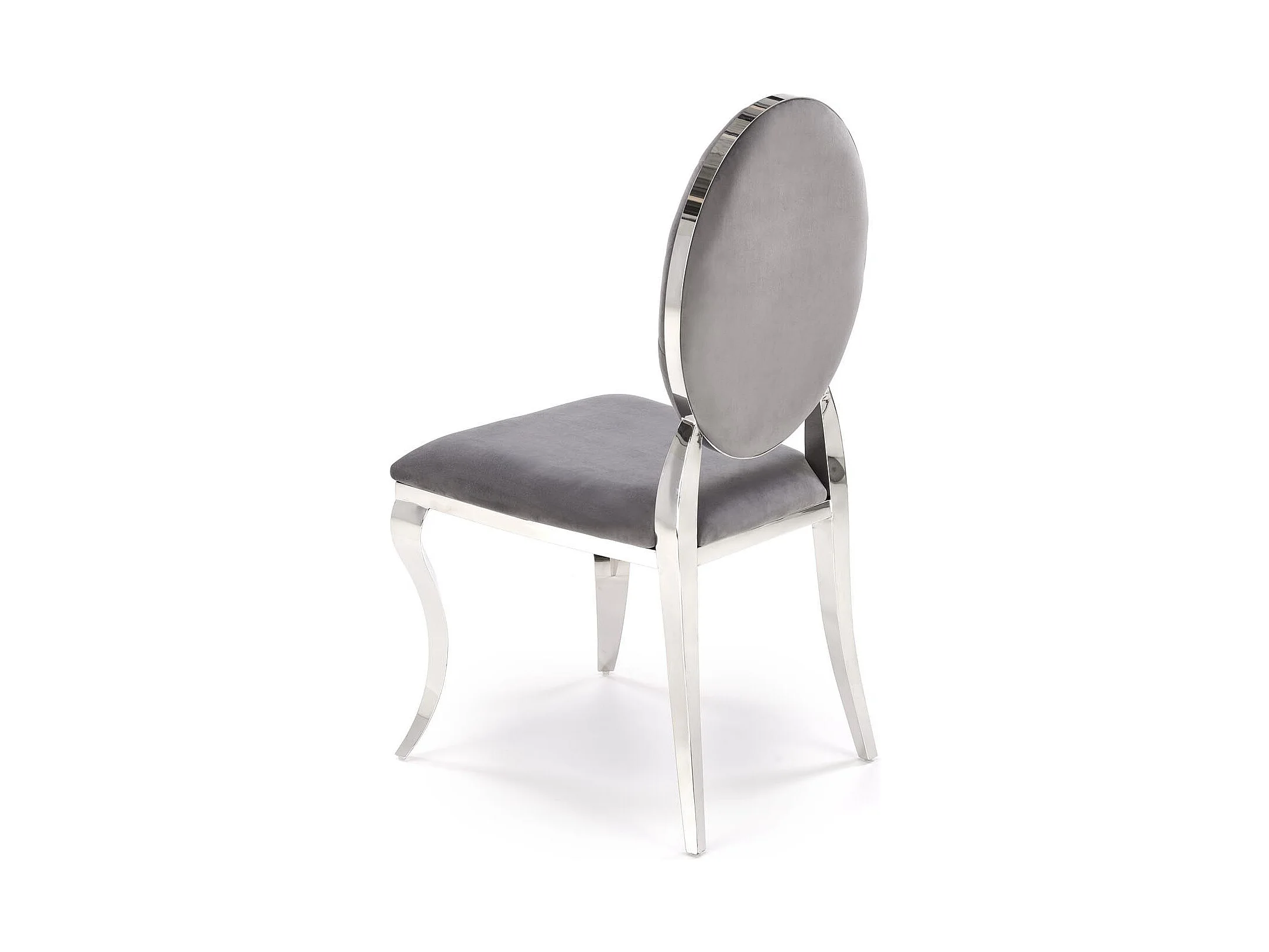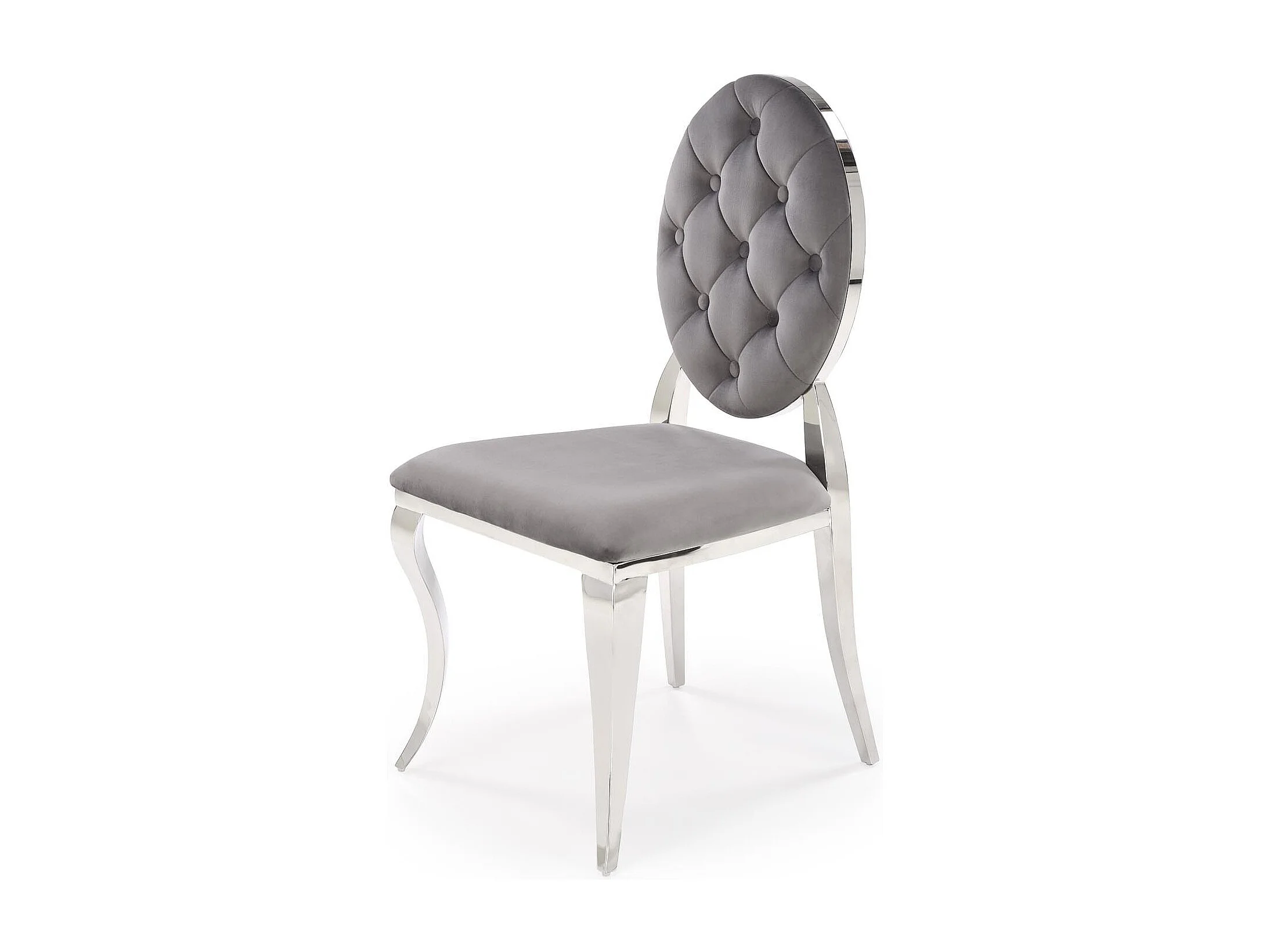 Sedia di design in velluto grigio con struttura in metallo argentato Canica