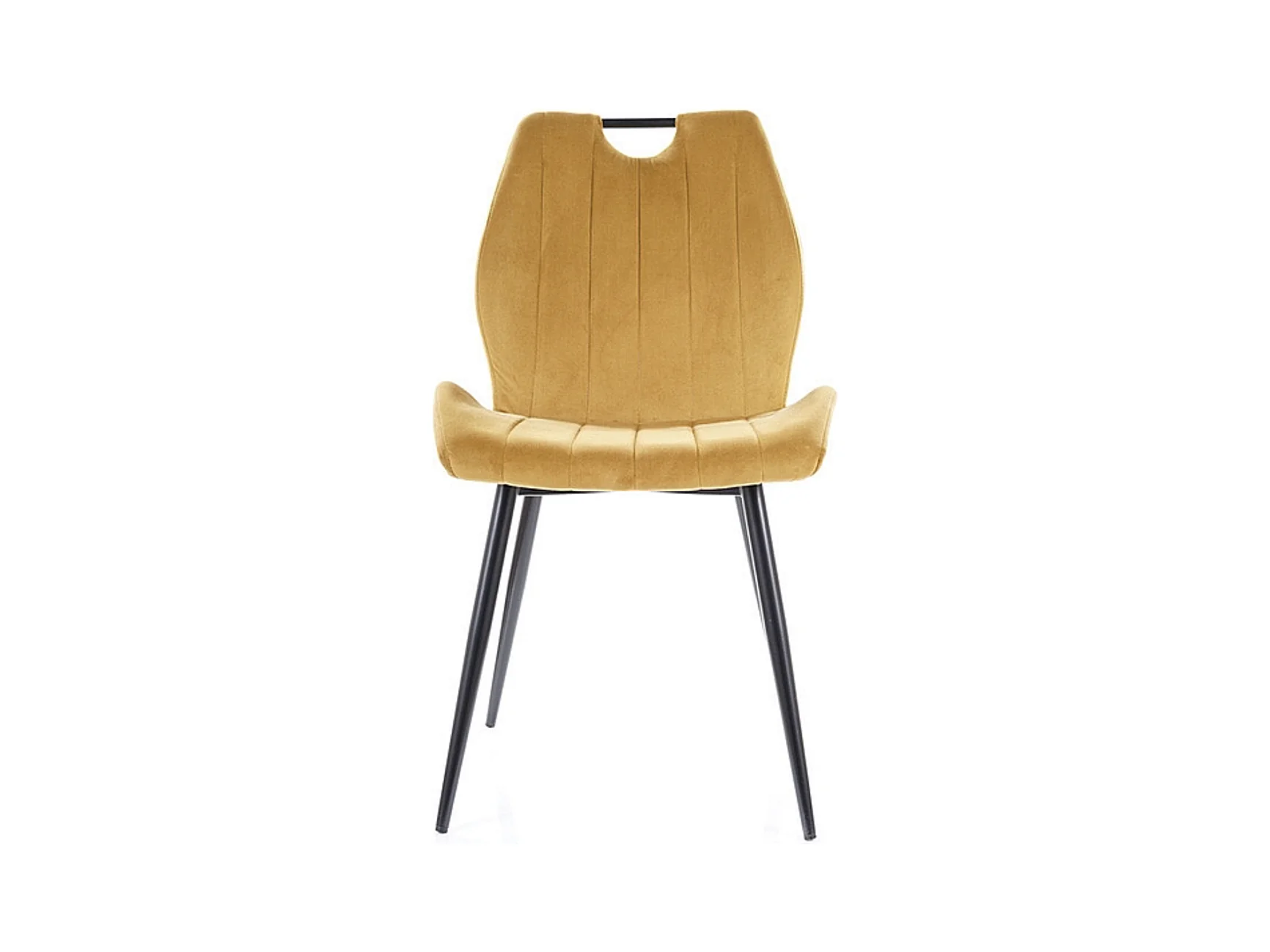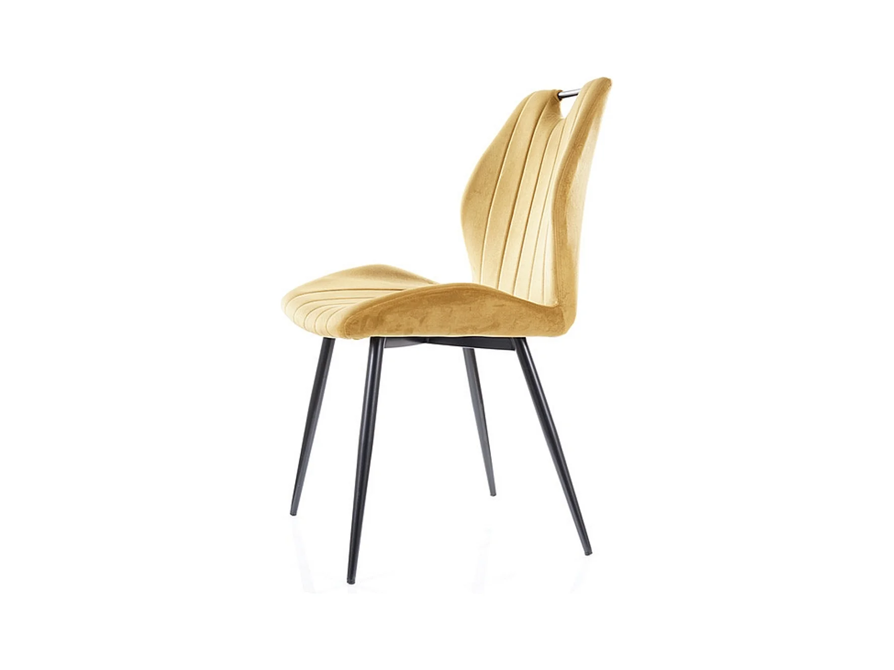 Sedia 'NINO' in velluto color oro, dimensioni H84 x L56 x P62.5, ideale per la tua cucina o sala da pranzo.