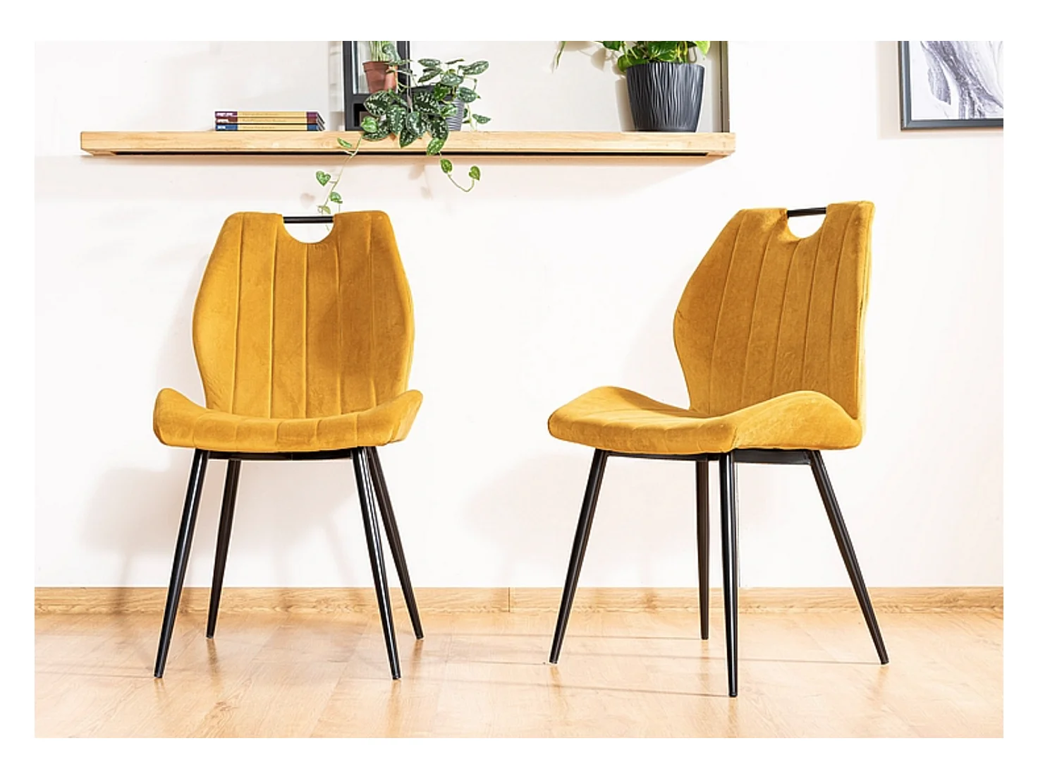 Sedia da pranzo in velluto giallo con gambe in metallo nero e oro BOCHICA