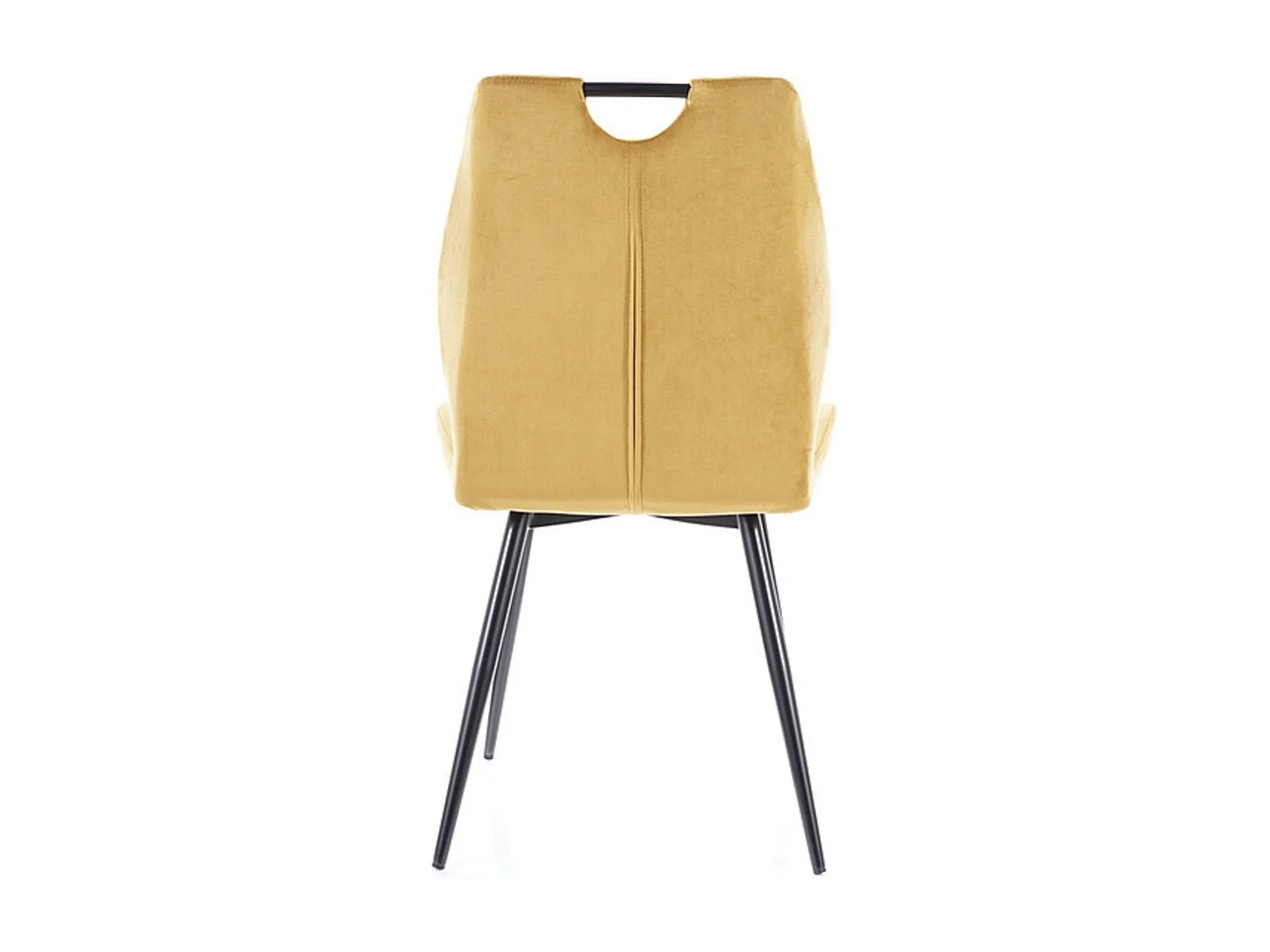 Sedia in velluto giallo con schienale arrotondato e gambe in metallo nero ERIKA