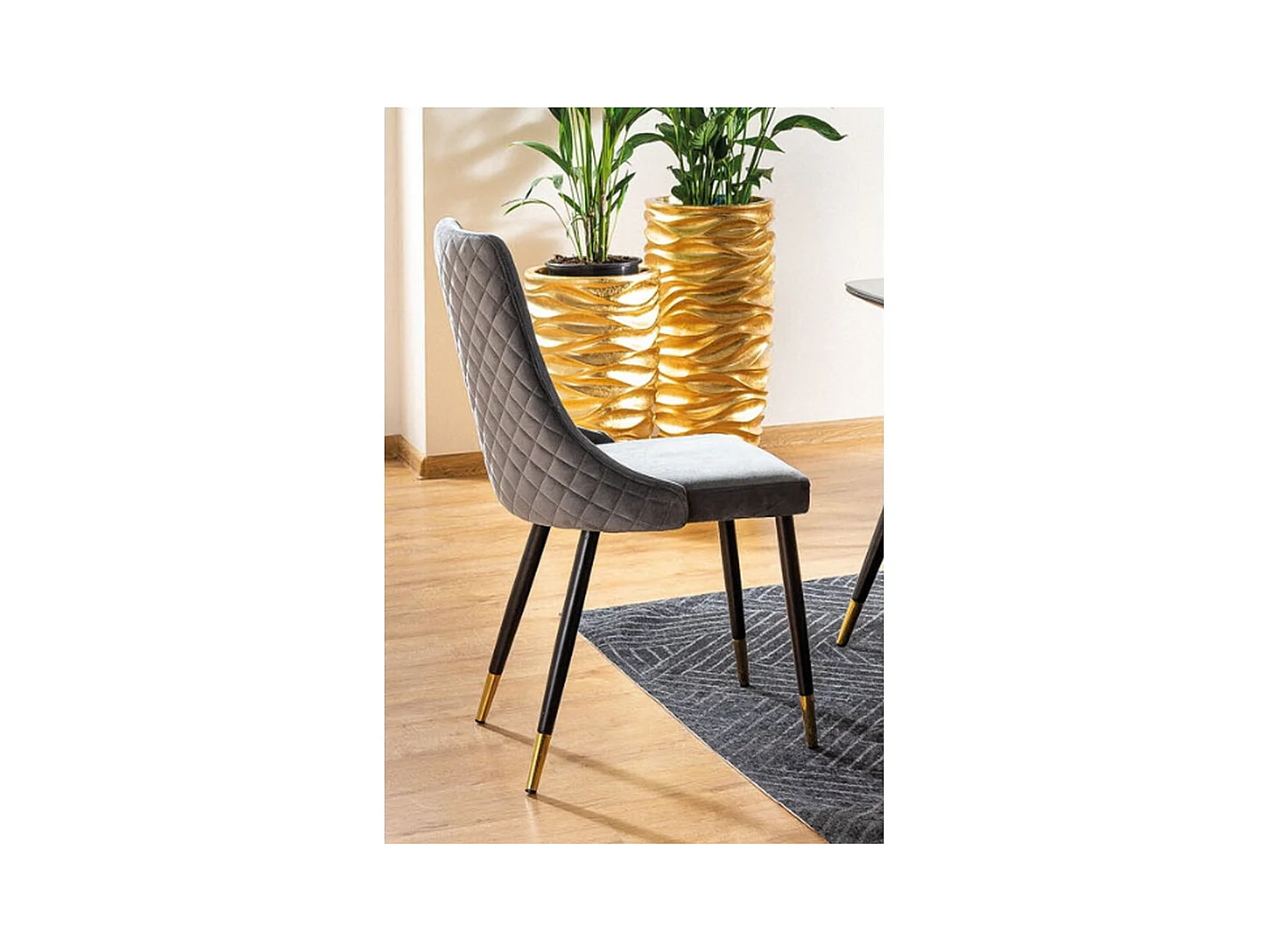 Sedia contemporanea FERGIE in velluto grigio con gambe in metallo nero