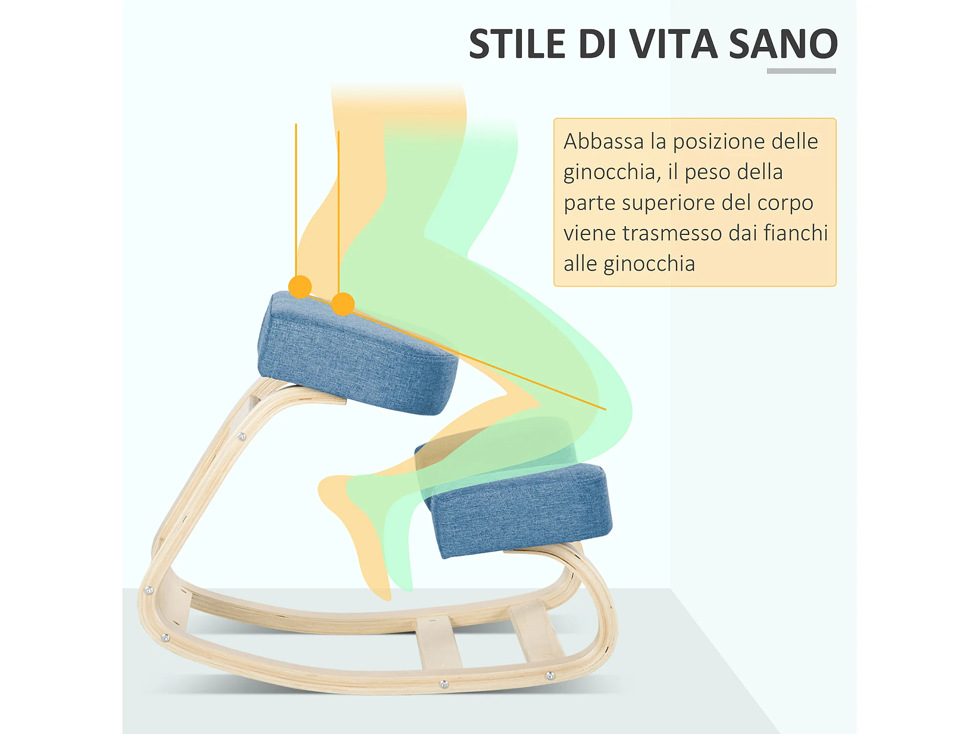 Sedia ergonomica con inginocchiatoio e cuscino imbottito blu