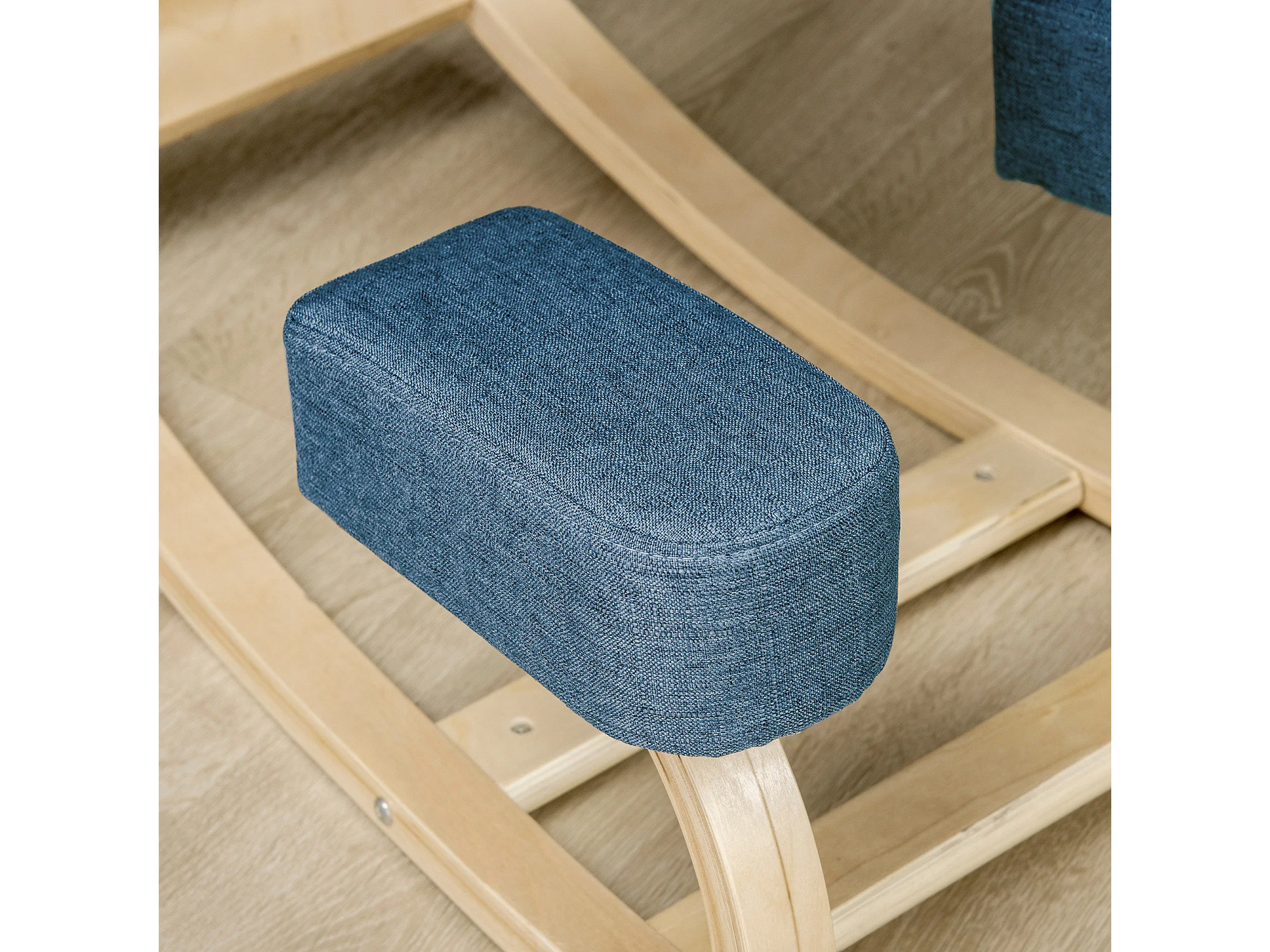 Poltrona scandinava a dondolo in legno e tessuto con braccioli, blu
