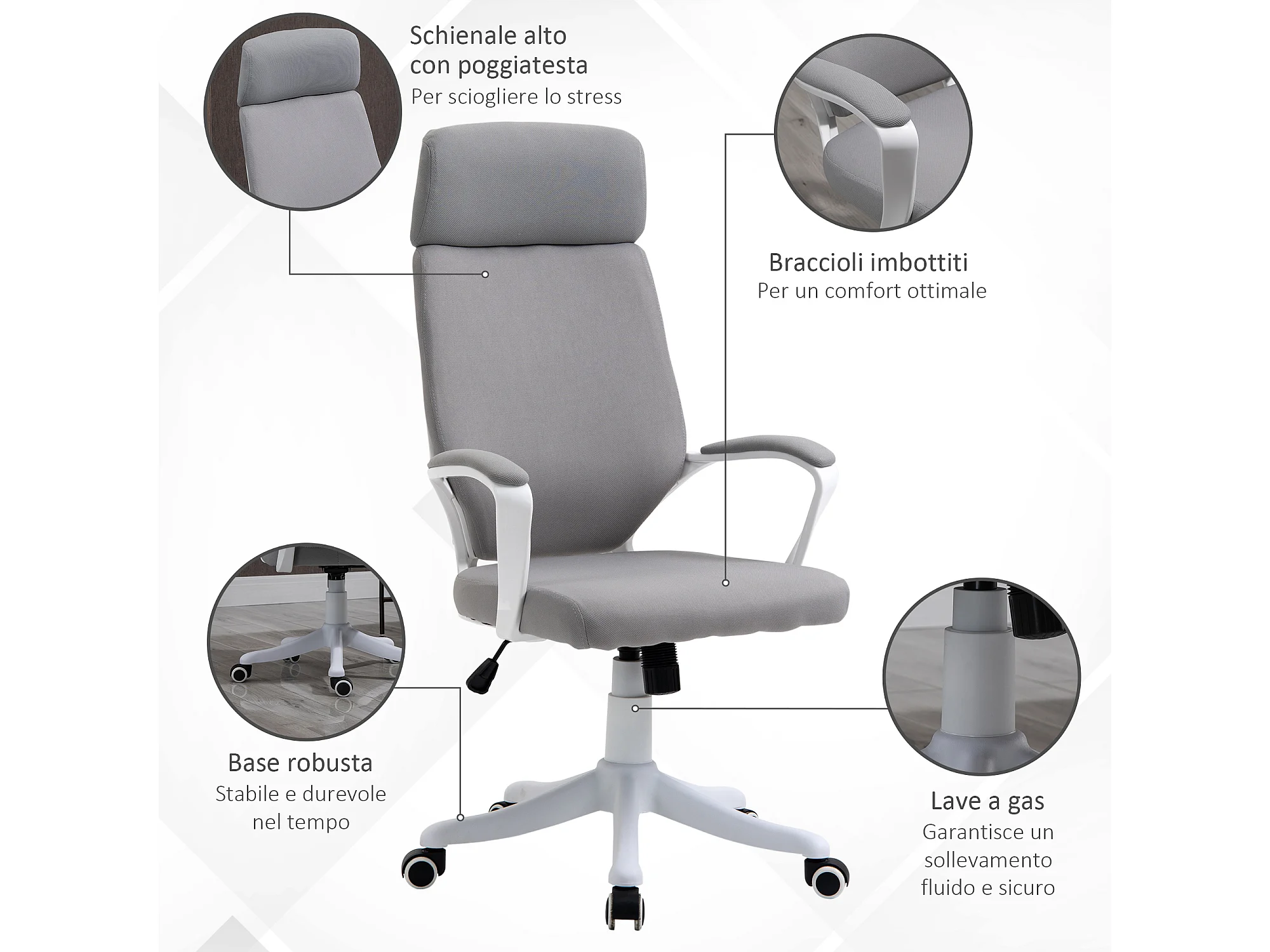 Sedia da ufficio con altezza regolabile e ruote girevoli grigio chiaro