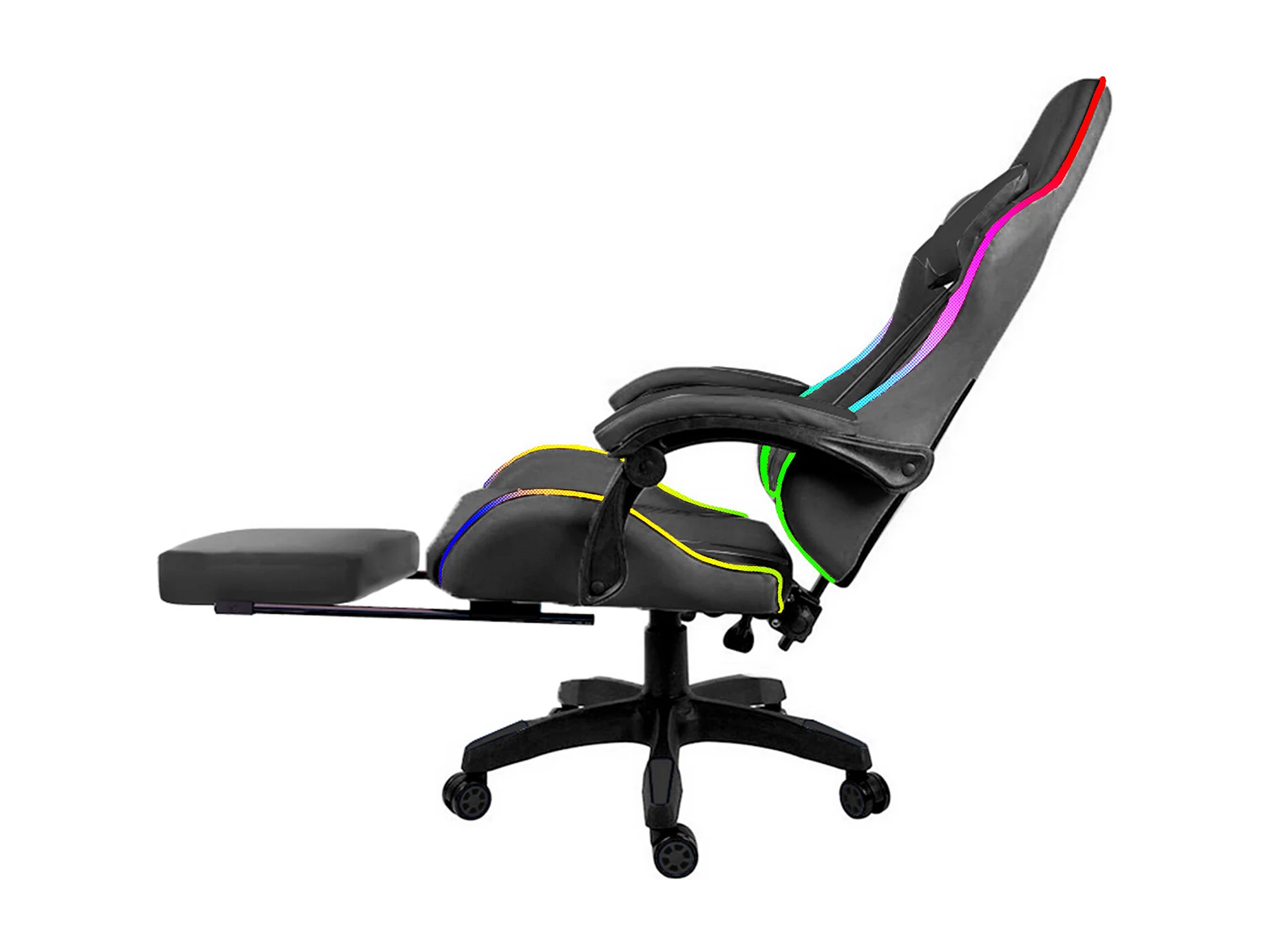 Sedia Gaming Con LED RGB Telecomando Poltrona Ufficio Scrivania Casa PC Racing Girevole Ergonomica Ecopelle Cuscino Lombare Poggiapiedi Nero
