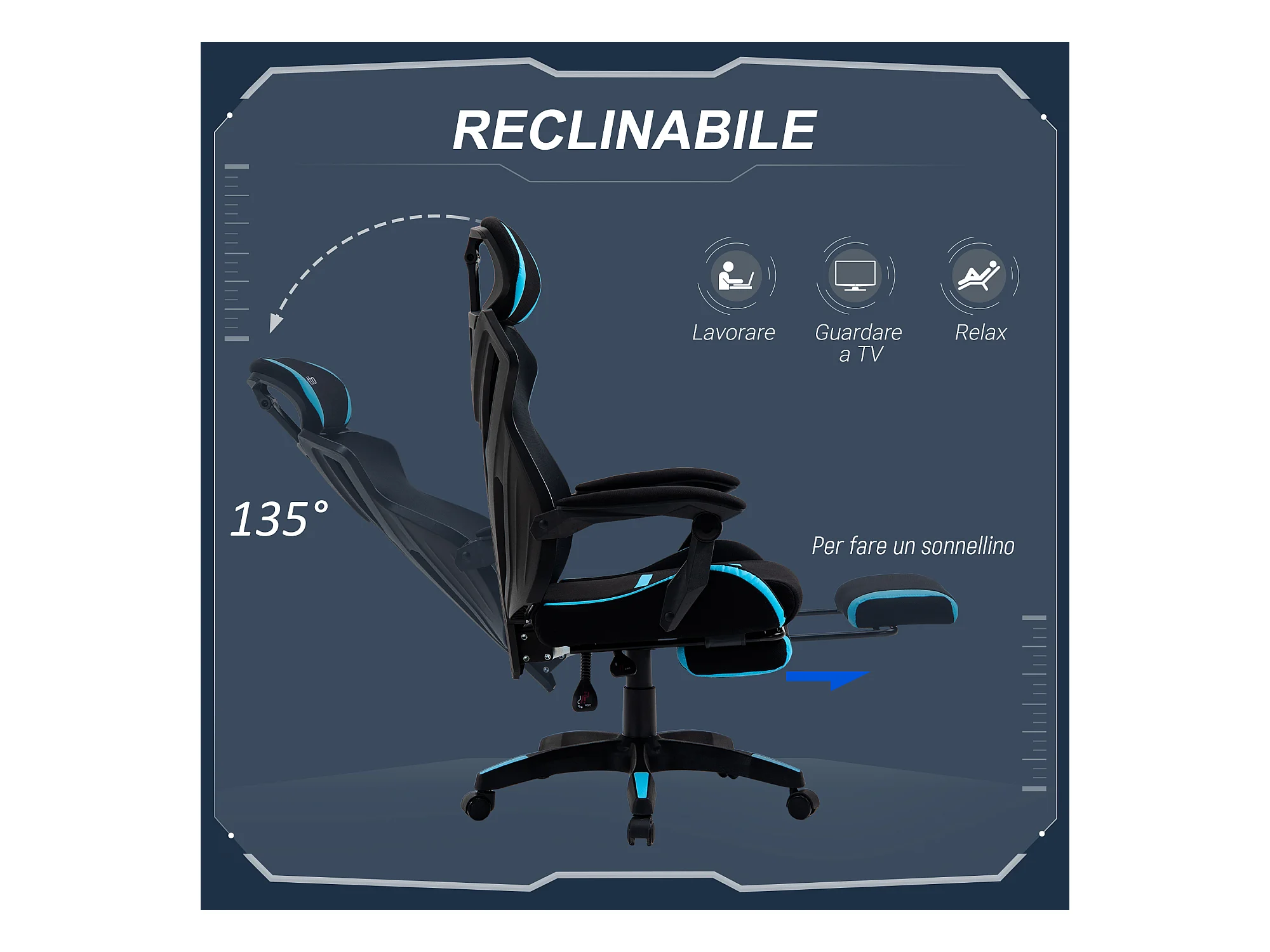 Sedia gaming ufficio racer ergonomica in tessuto nero e blu