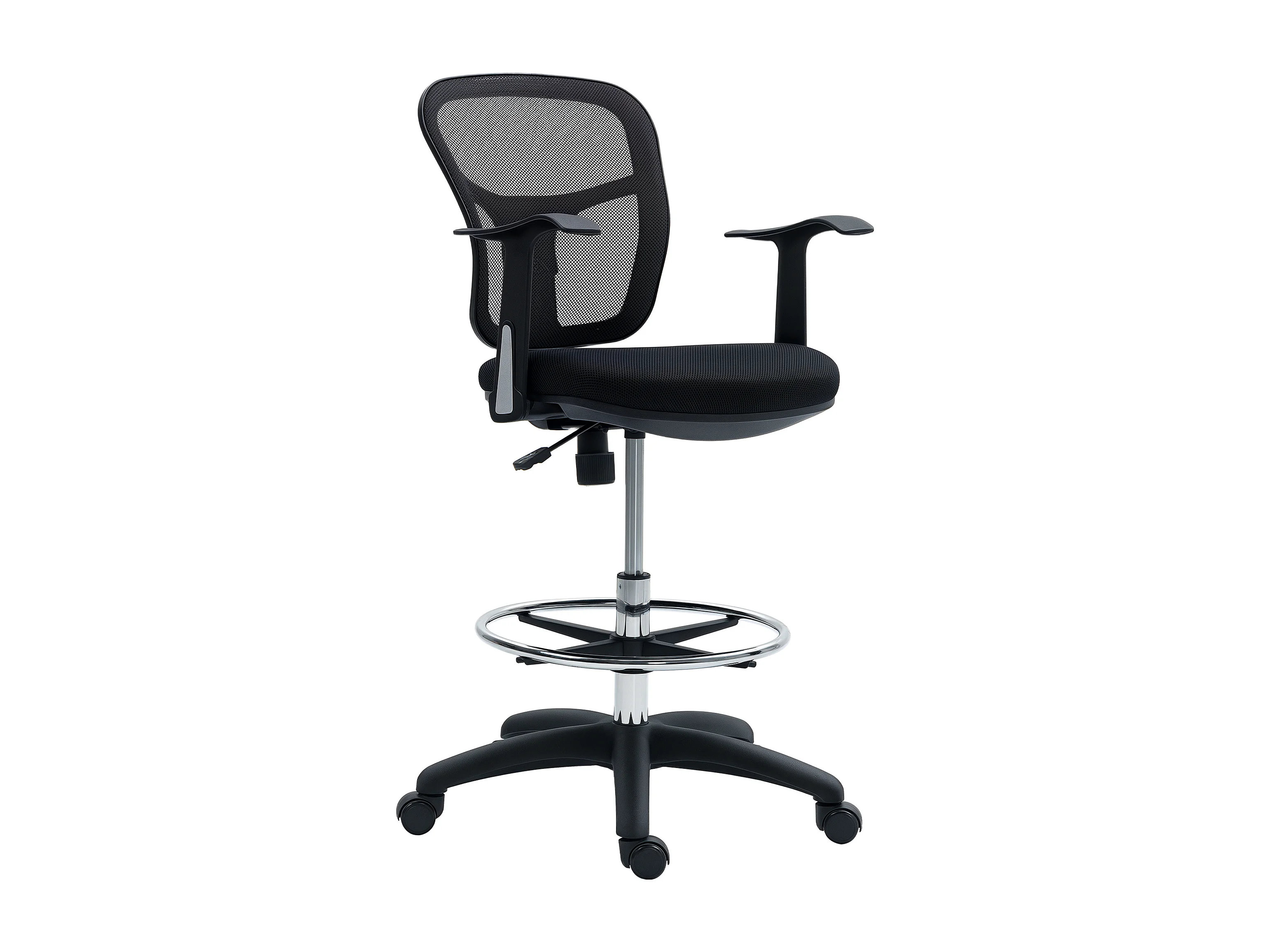 Sedia girevole con anello poggiapiedi e schienale ricurvo nera