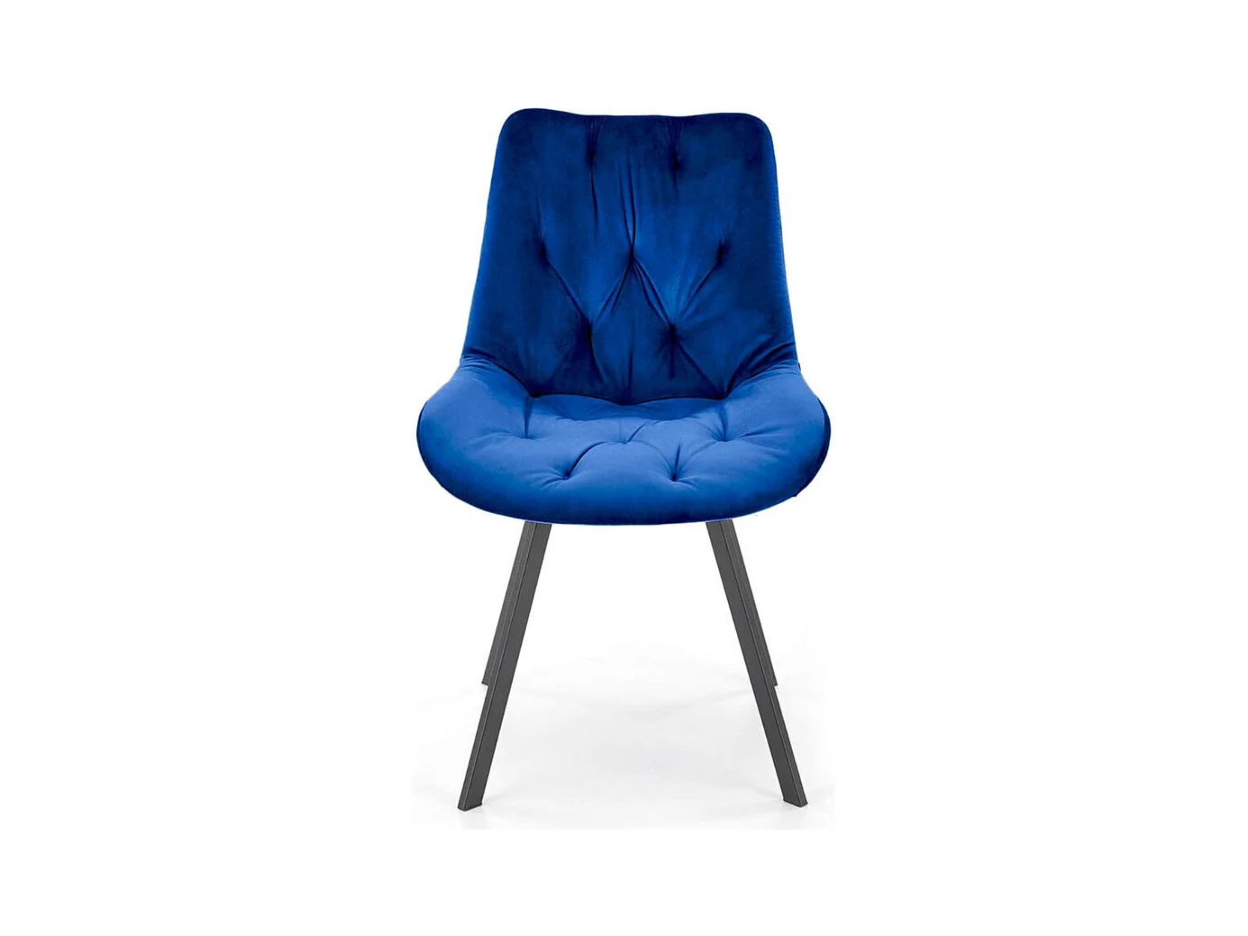 Sedia in velluto blu con sottili gambe in metallo nero MEET