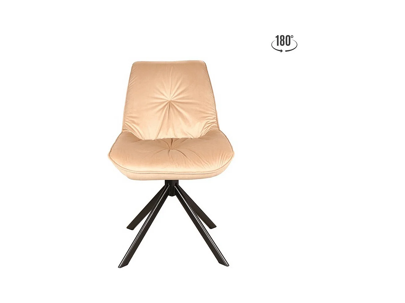 Sedia design Liberty in velluto beige con gambe in metallo nero
