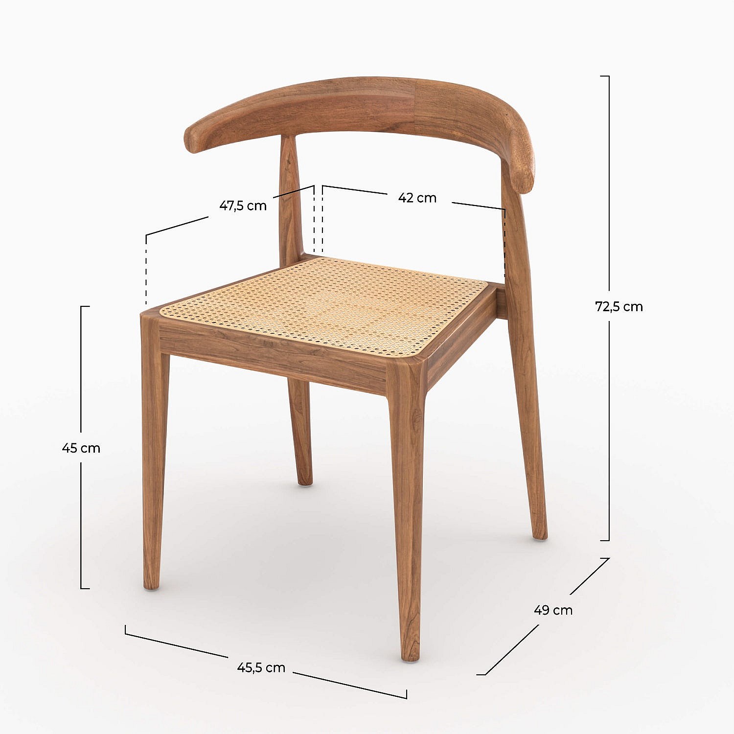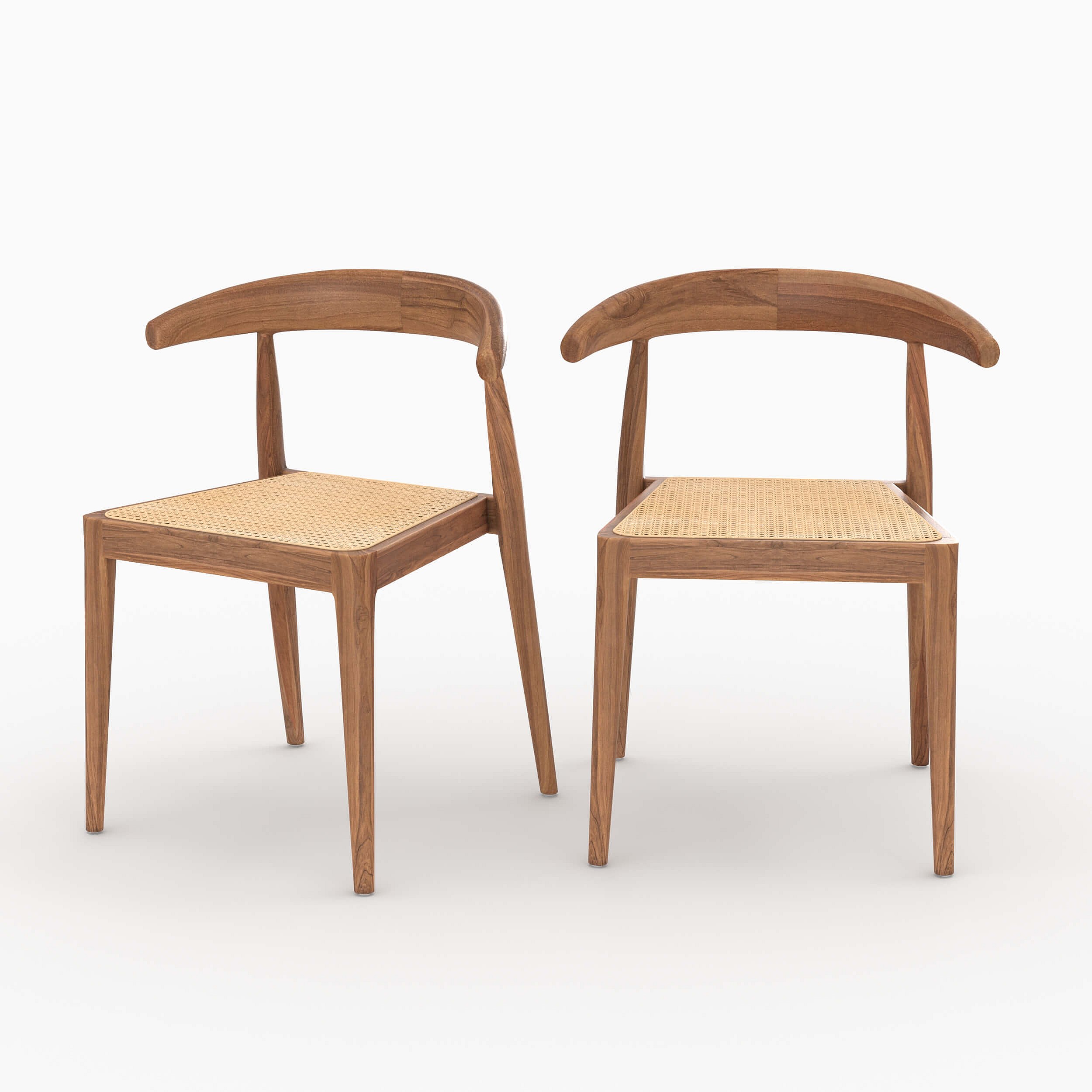 Set di 2 sedie in legno di teak e paglia di Vienna in rattan - Alia