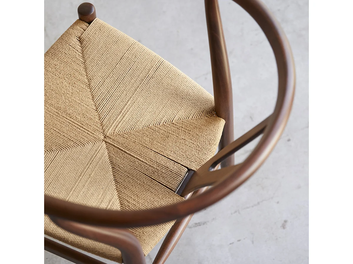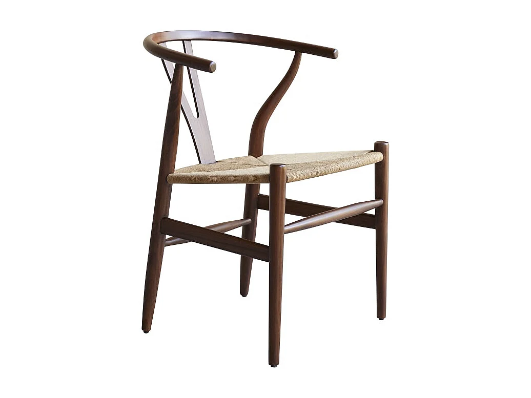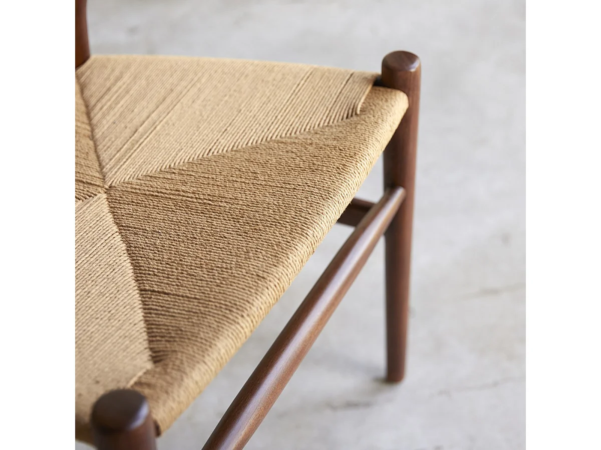 Sedia in legno di teak massiccio scuro e seduta intrecciata Blaise