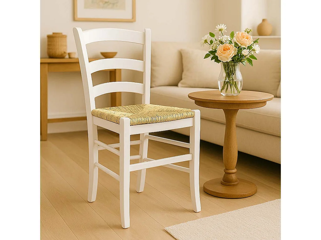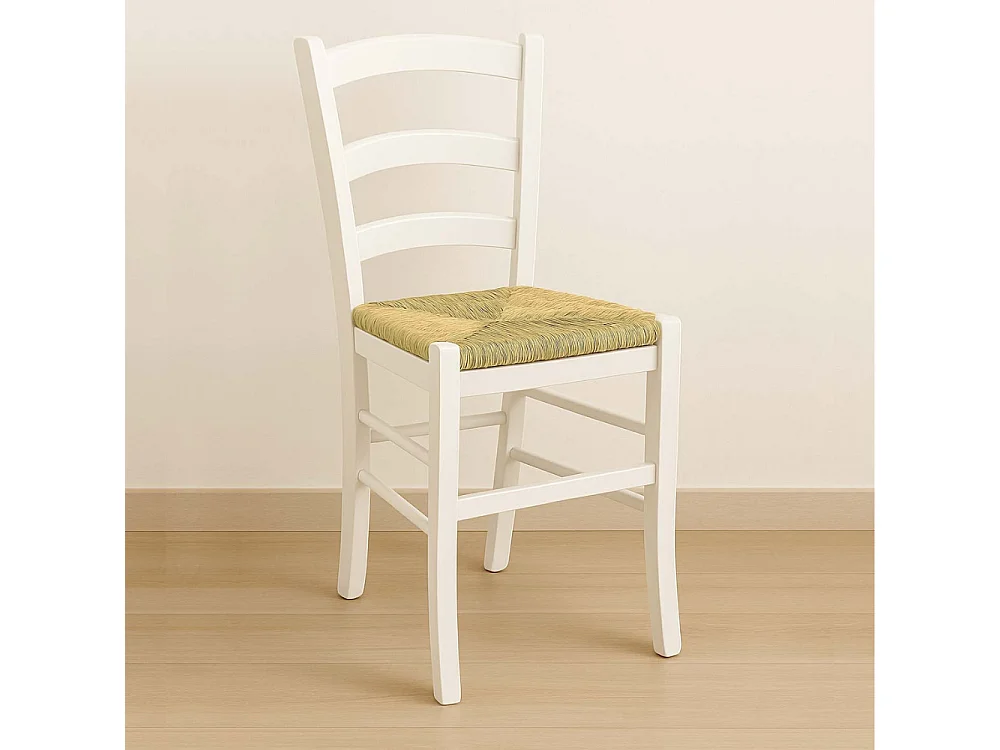 Sedia in legno venezia bianca laccata con seduta in paglia palustre intrecciata