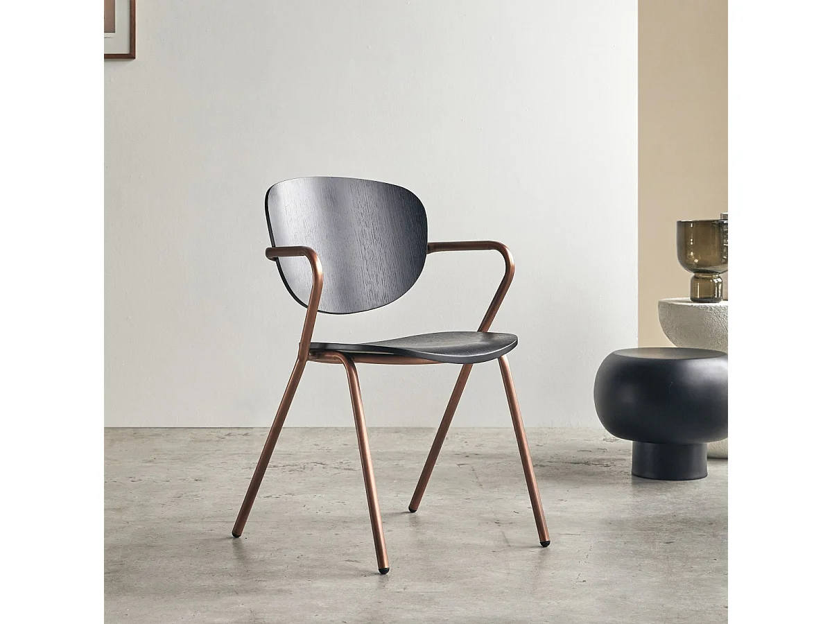 Sedia con doghe verticali in legno massello di acacia nero Leonor