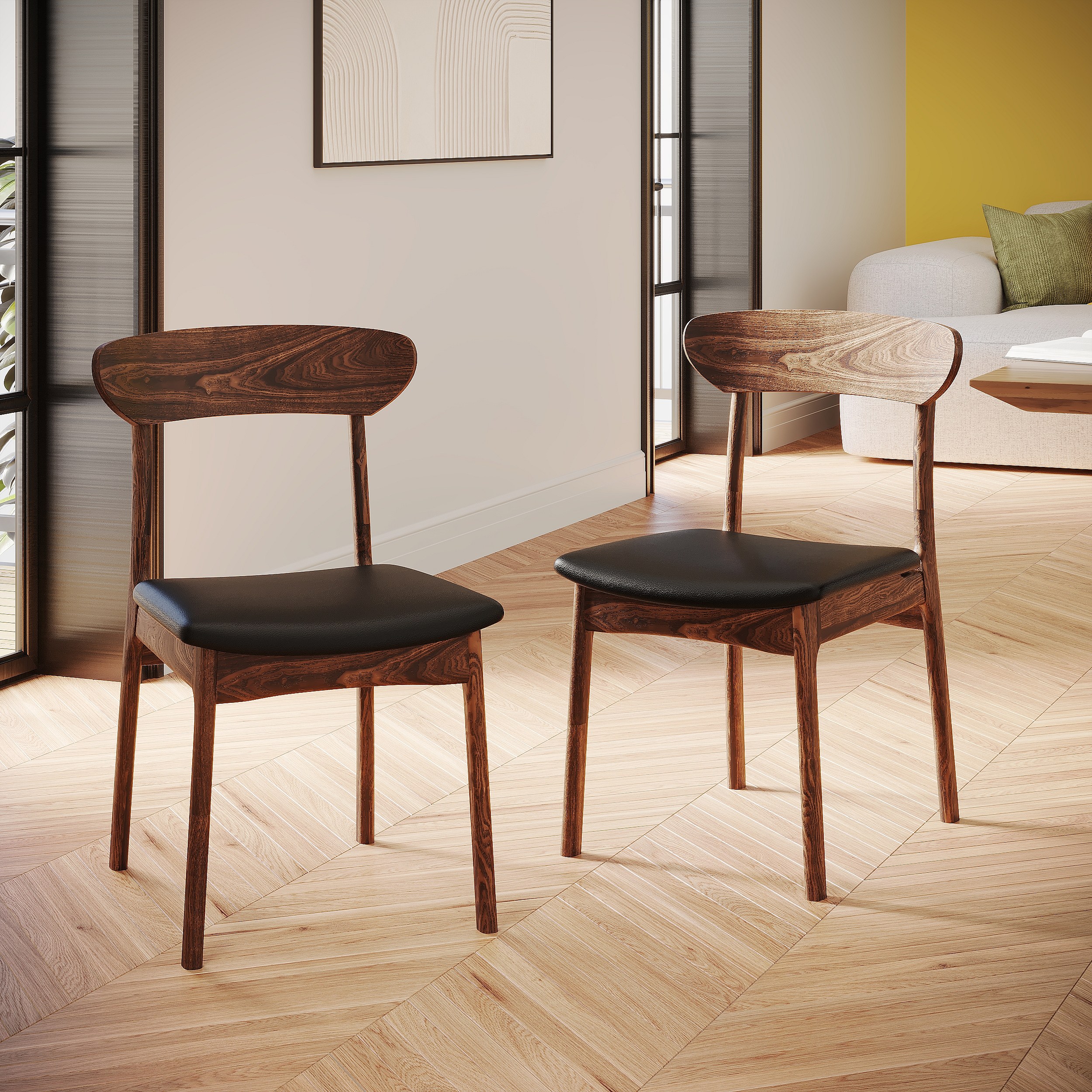 Sedie design in legno scuro e nero (set di 2) ELION
