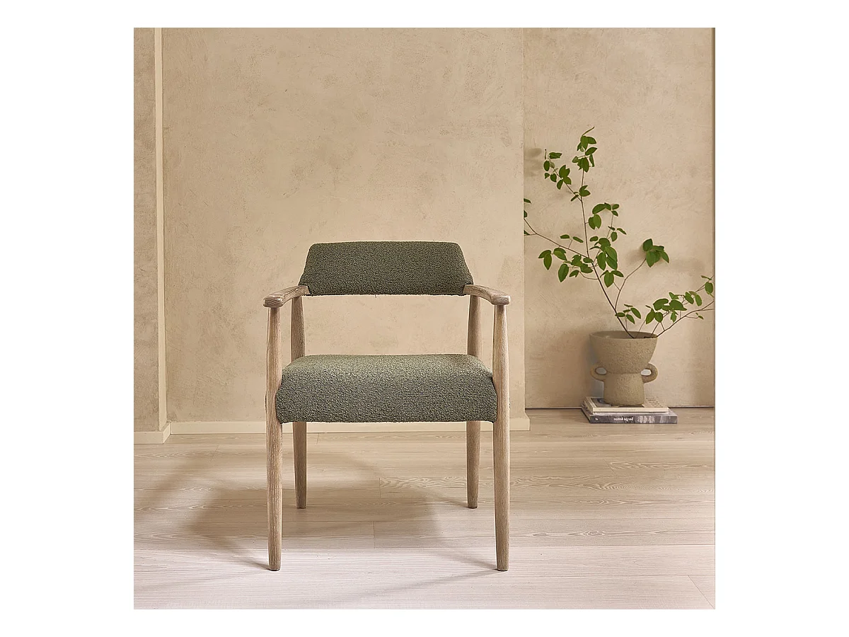 Sedia in legno di hevea e tessuto verde mélange. - Héloïse