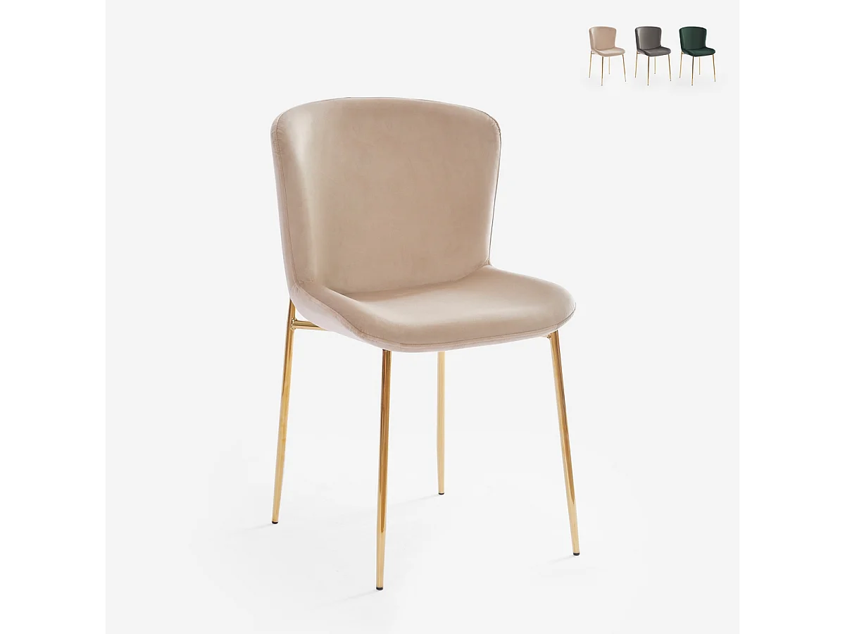 Sedia in tessuto di design per sala da pranzo con gambe dorate Virin - Beige