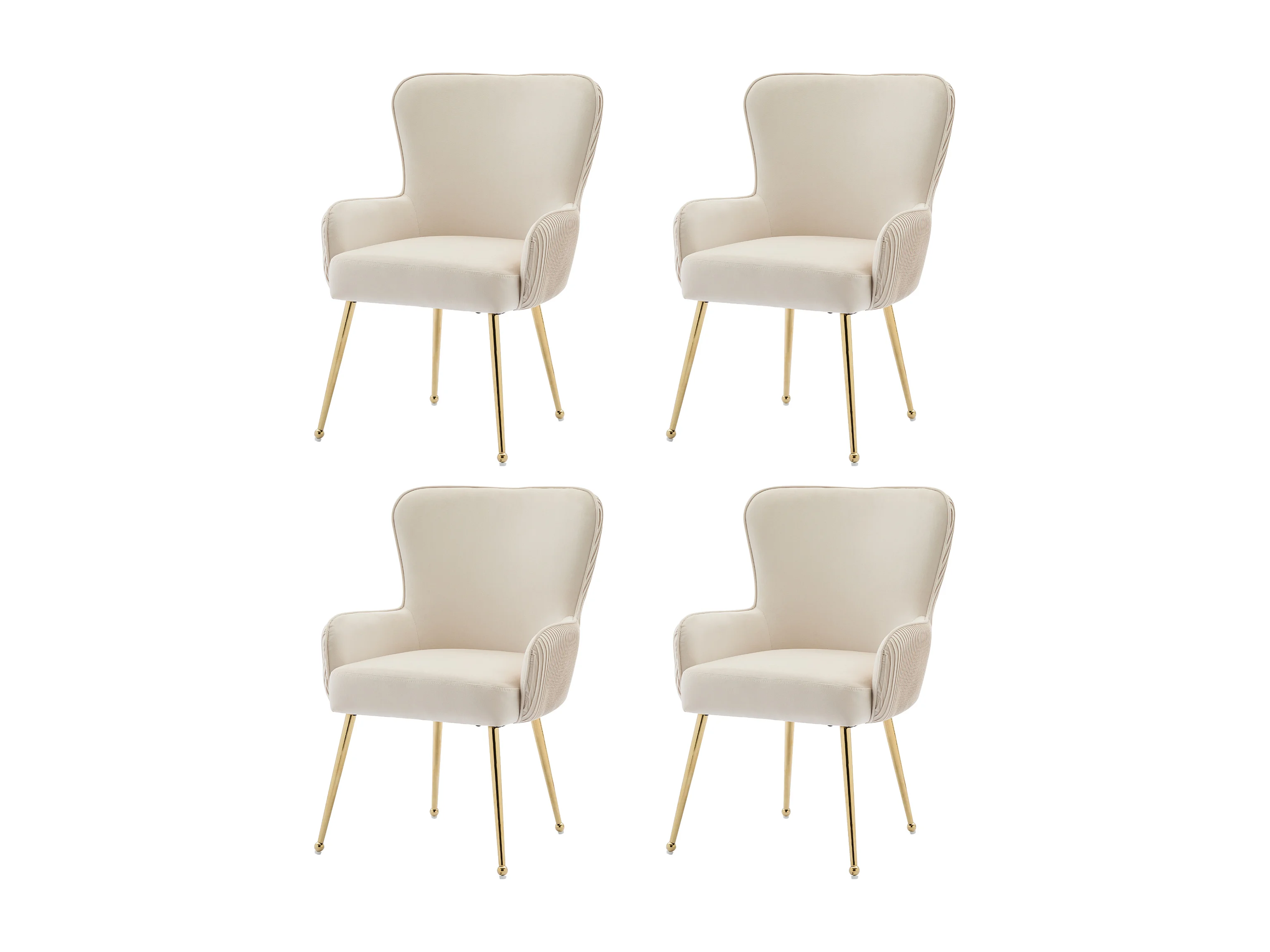 Chaise velours beige luxe con accoudoirs pieds métal doré réglables salon salle à manger lot de 4