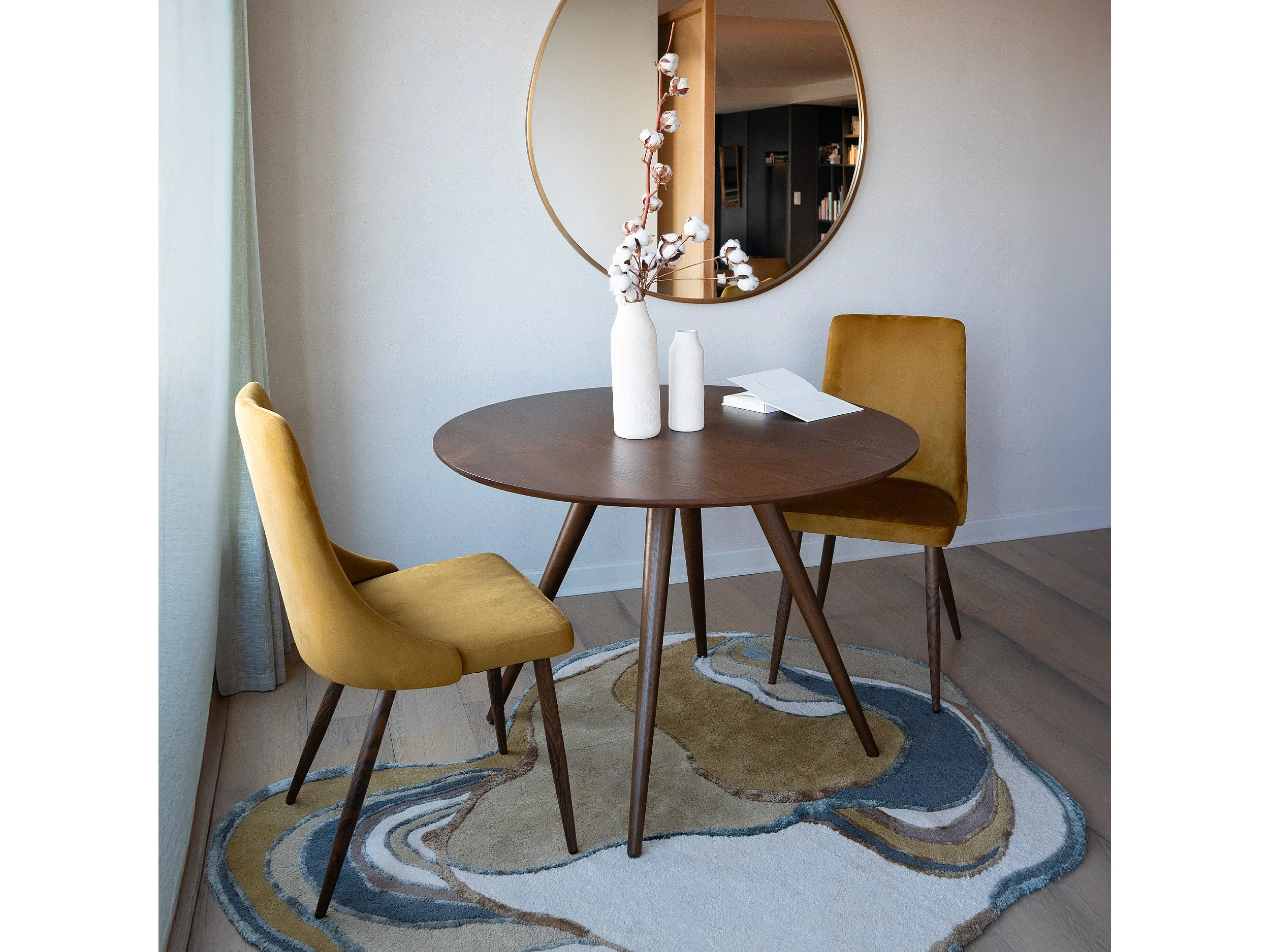 Set di 2 sedie in velluto a coste giallo senape e legno di noce - Jade