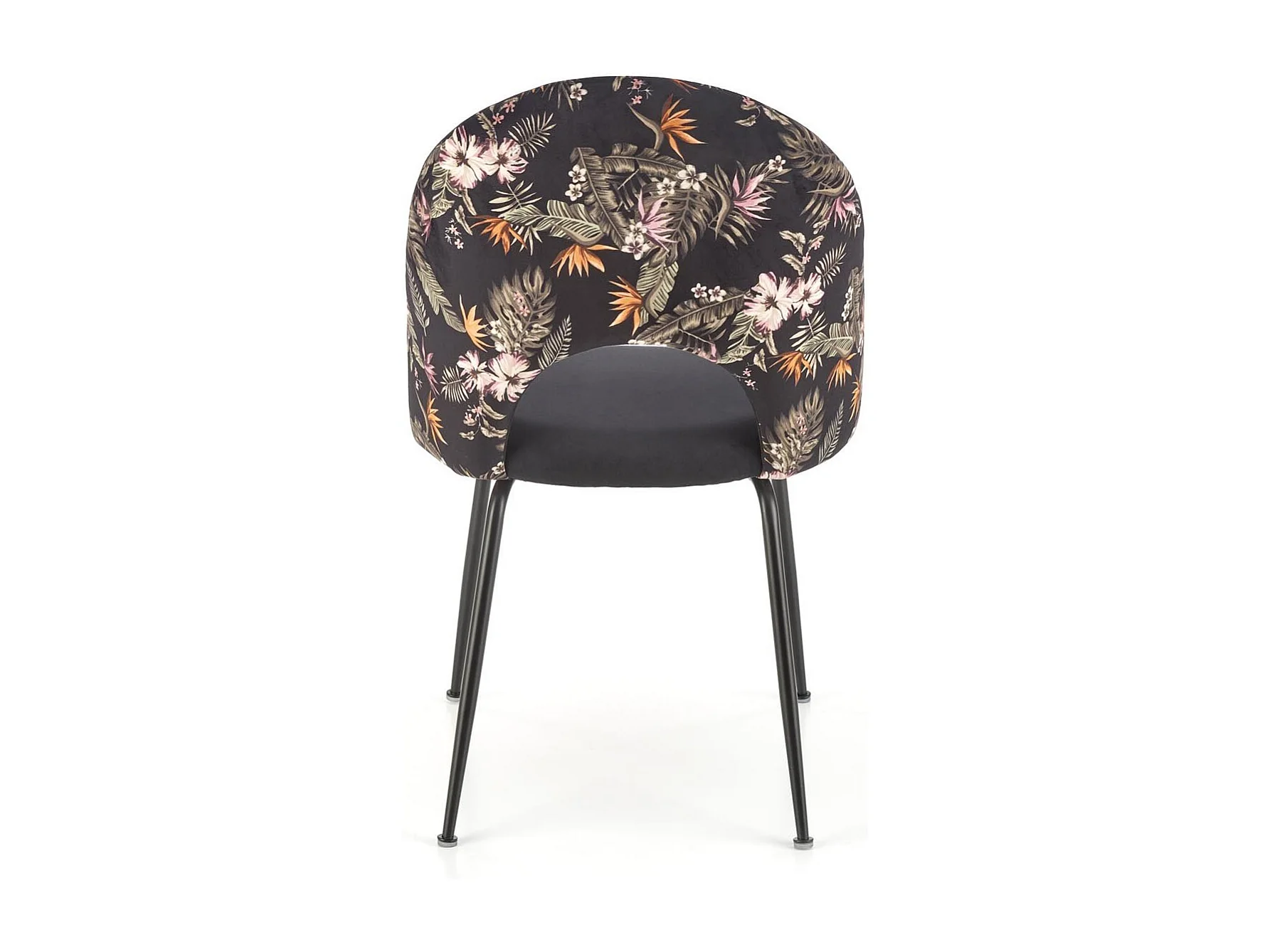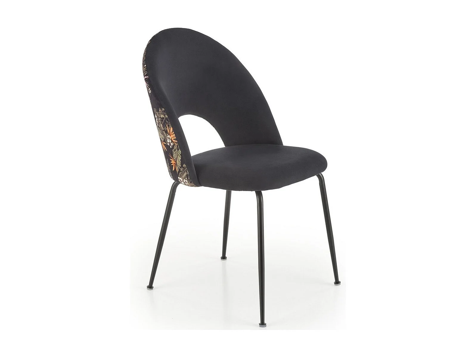 Sedia in velluto nero con schienale a stampa floreale Marika