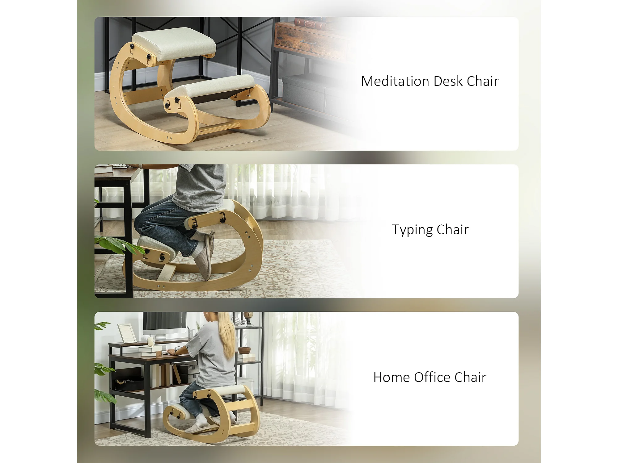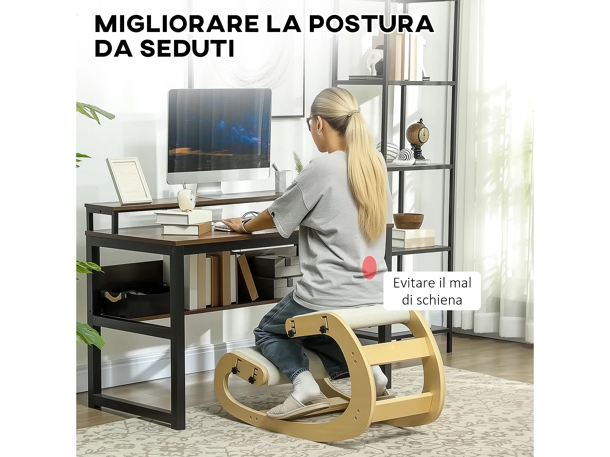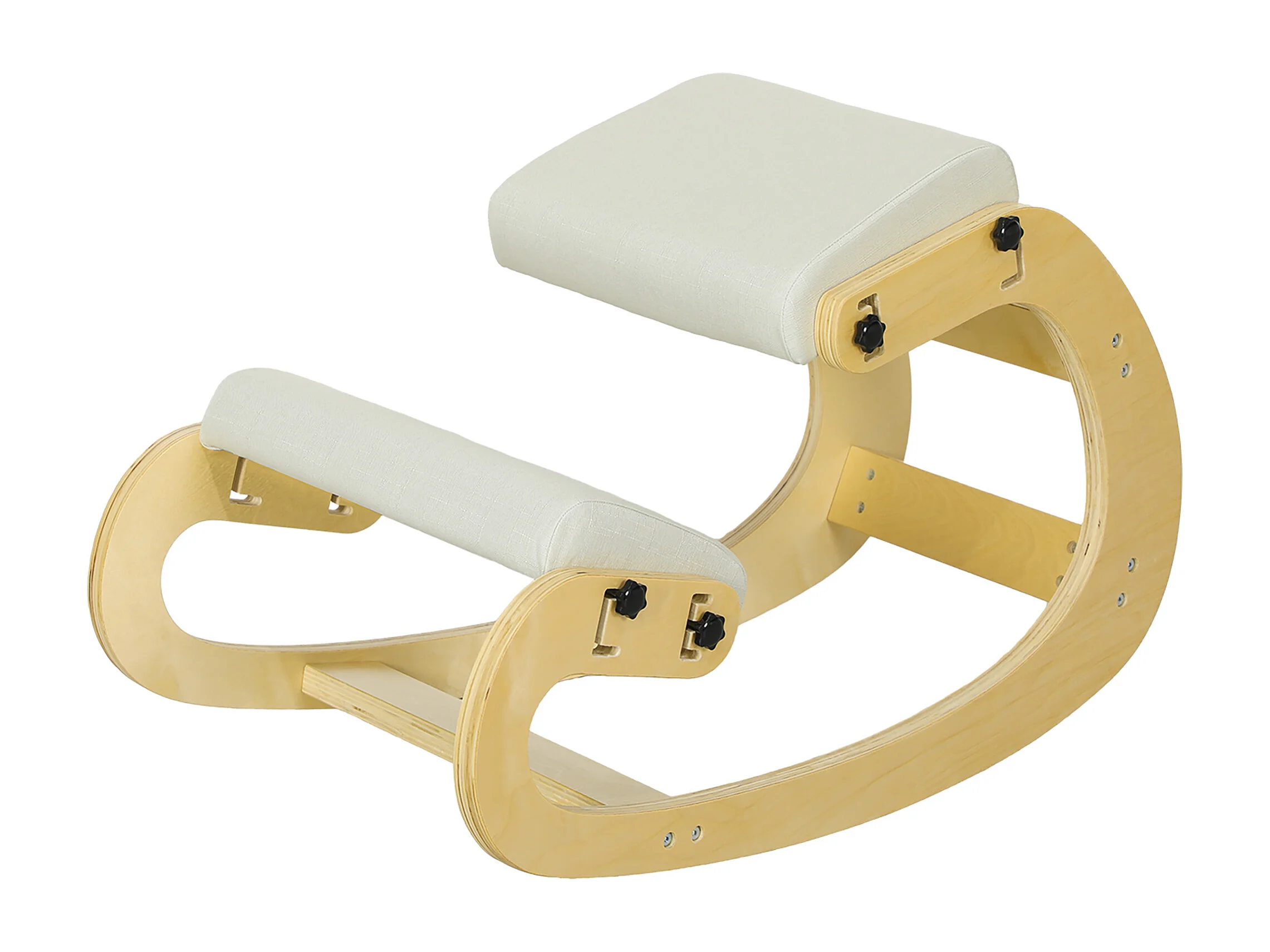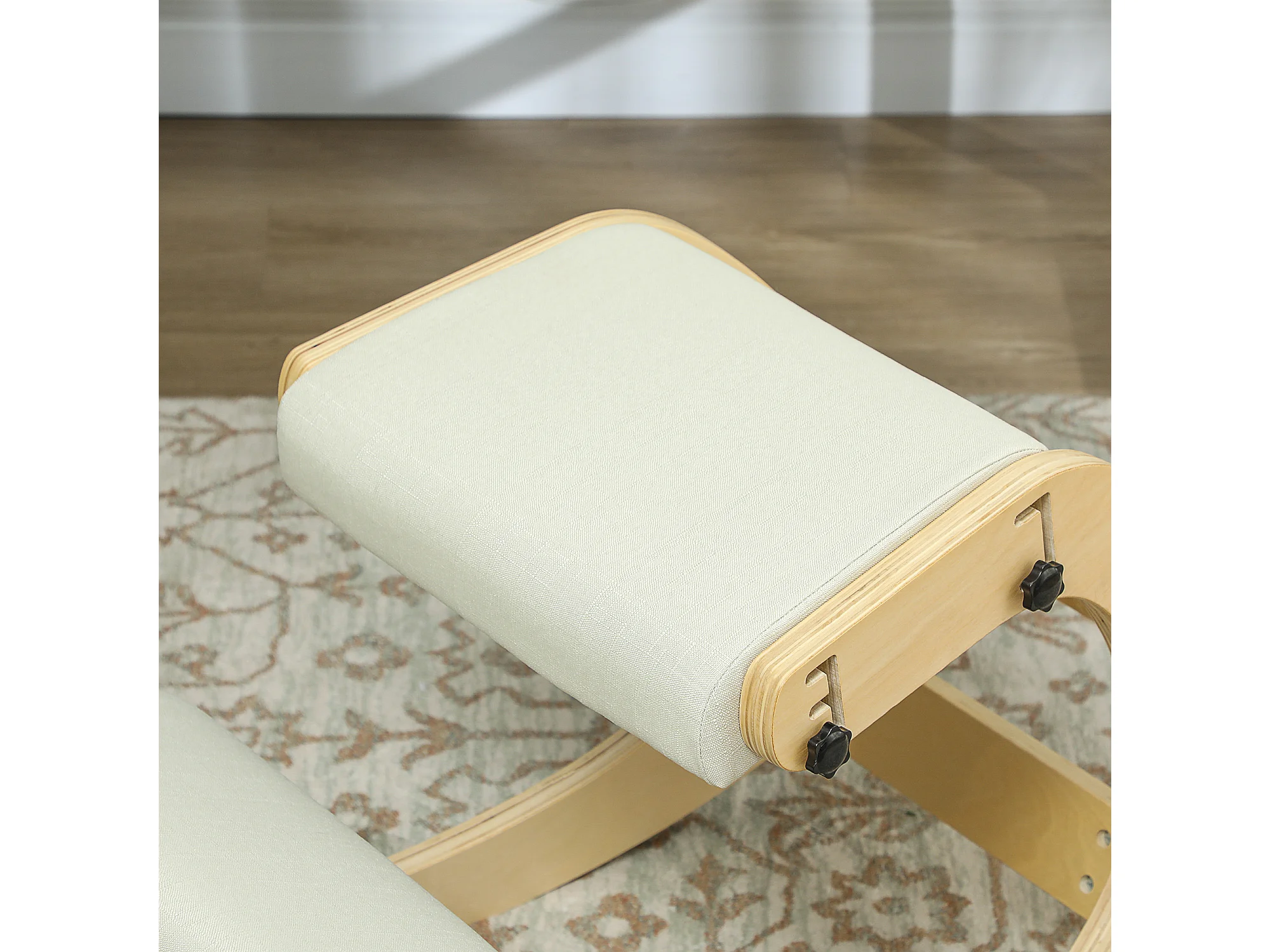 Sedia inginocchiatoio dondolante in tessuto effetto lino legno crema