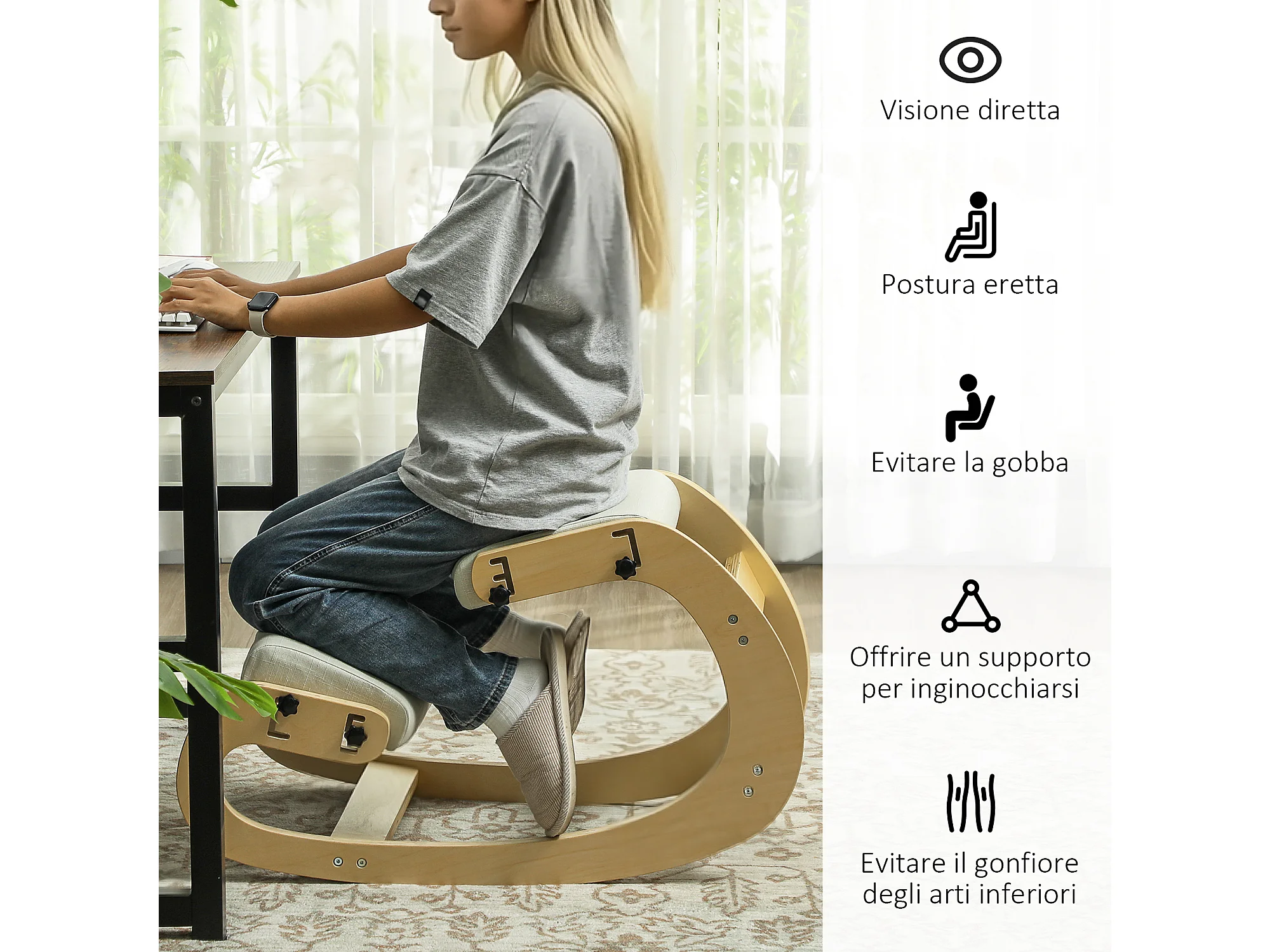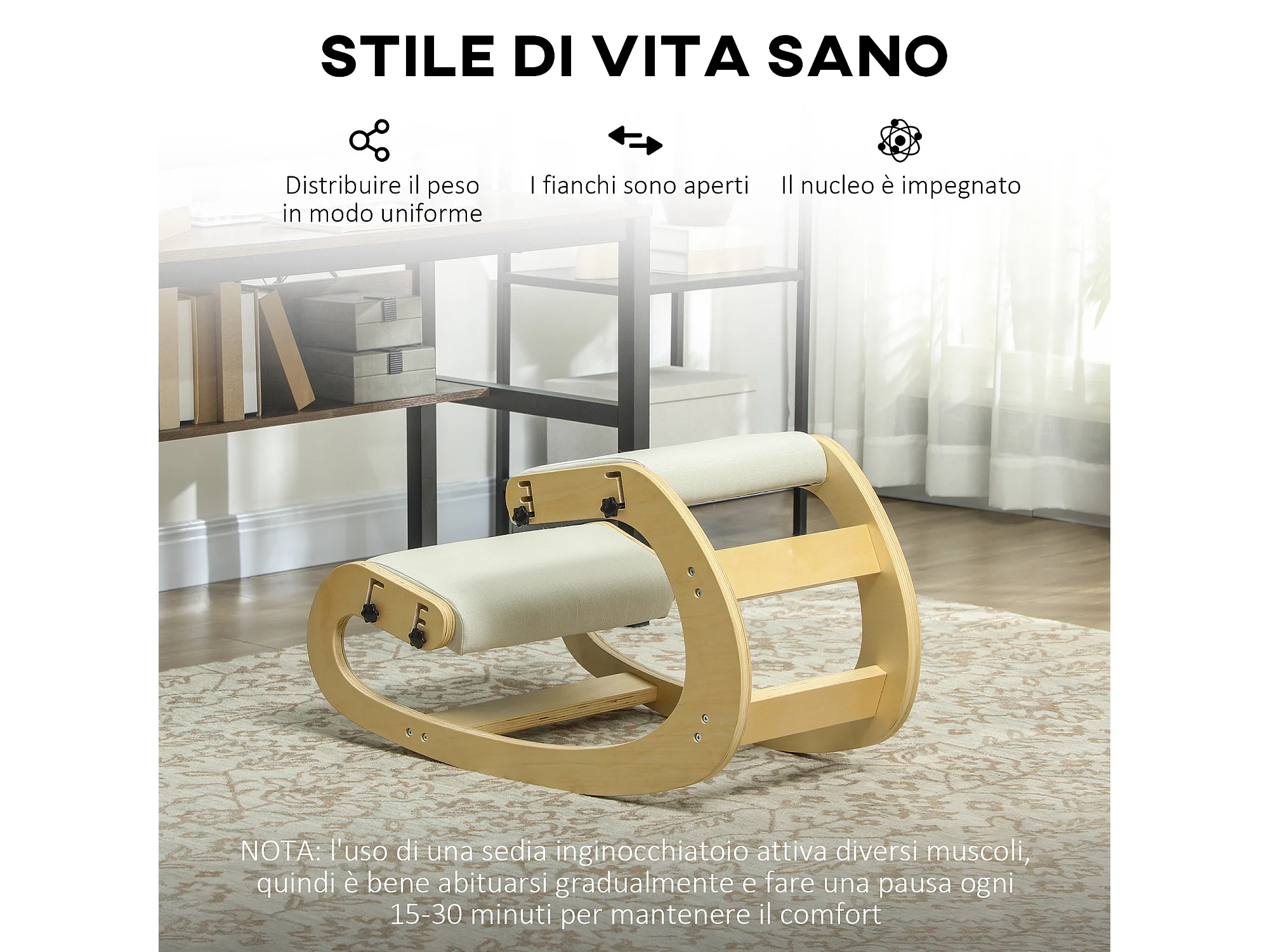 Sedia inginocchiatoio ergonomica in betulla e cuscino crema