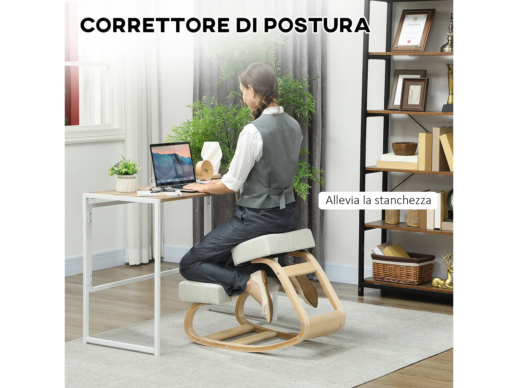 Sedia inginocchiatoio dondolante in tessuto effetto lino legno crema