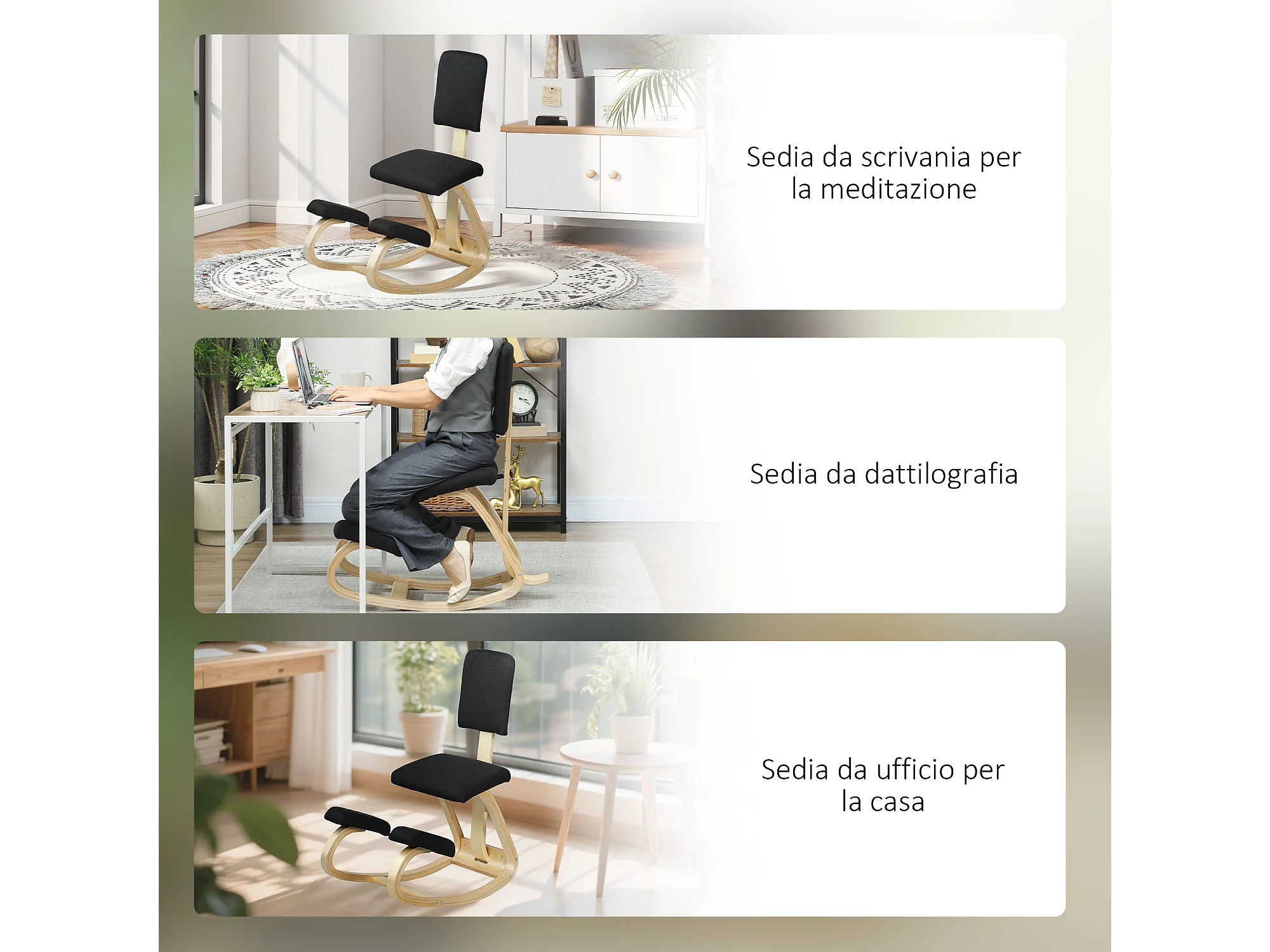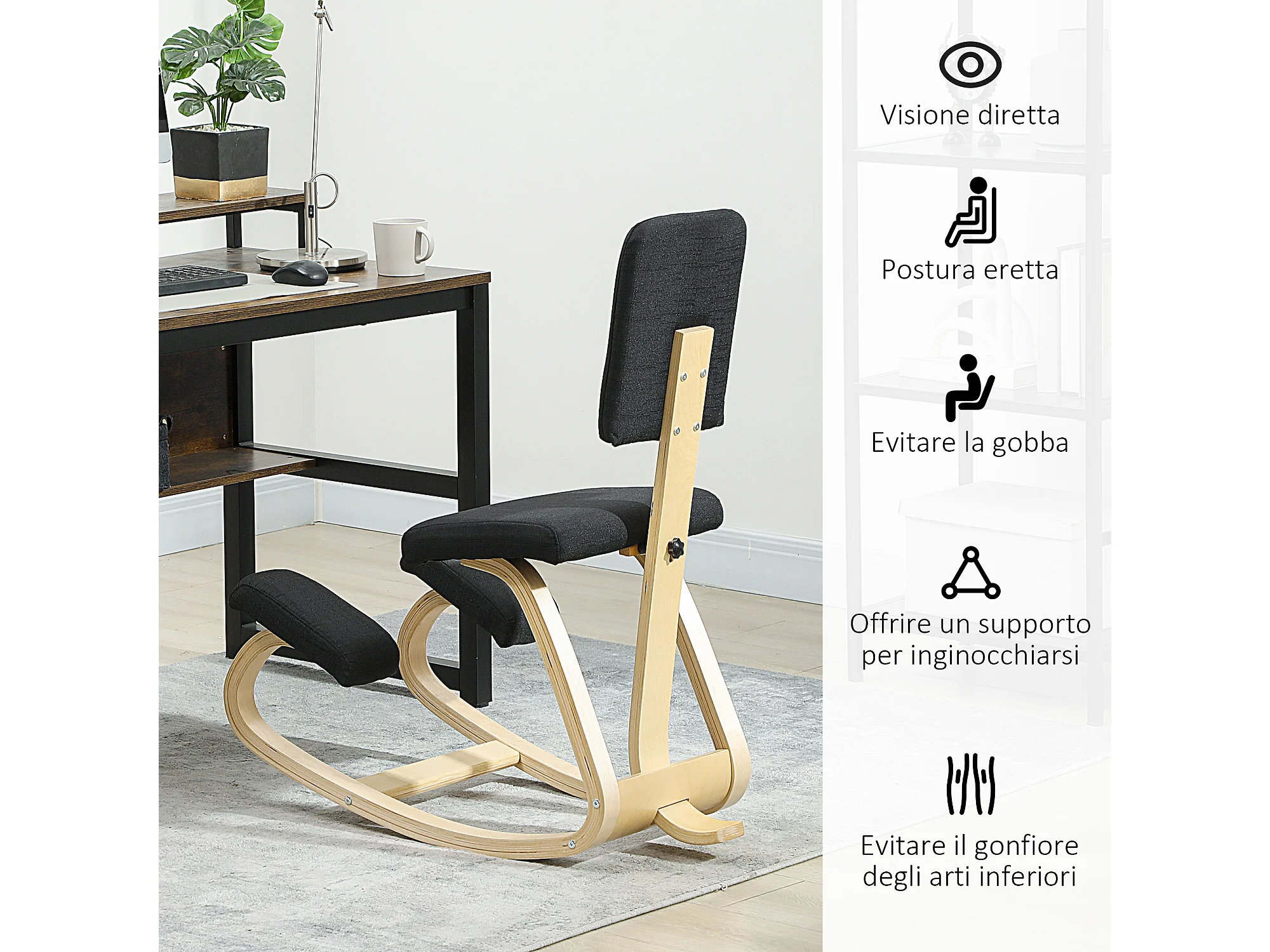 Sedia inginocchiatoio in tessuto effetto lino e legno di betulla nero