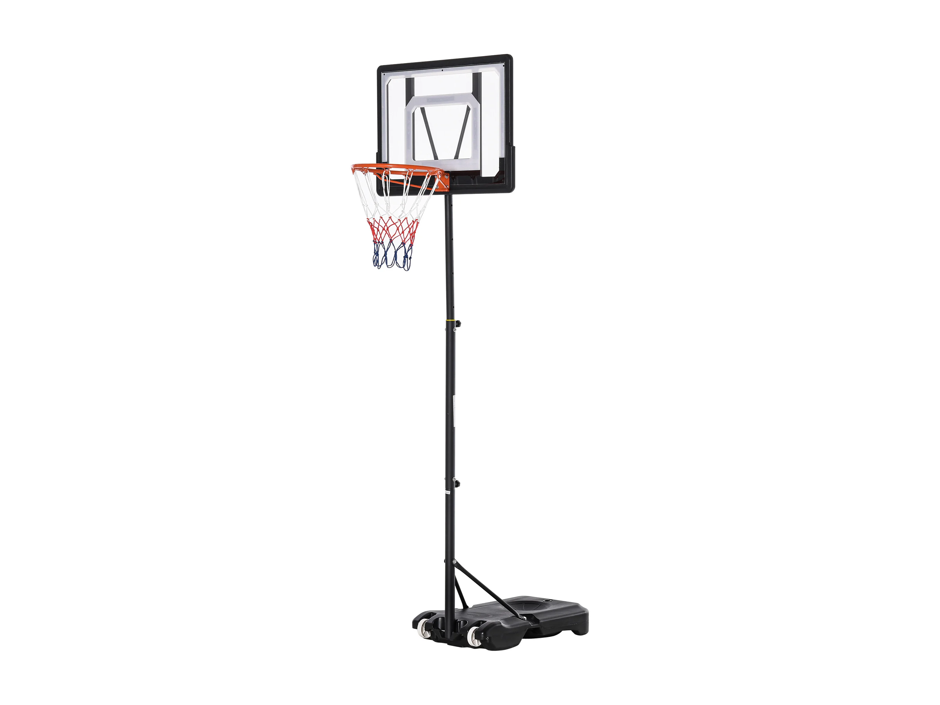 Canestro da Basket Esterno con Supporto, Altezza Regolabile 147-260 cm, Base Allargata e Ruote, Uso Interno ed Esterno