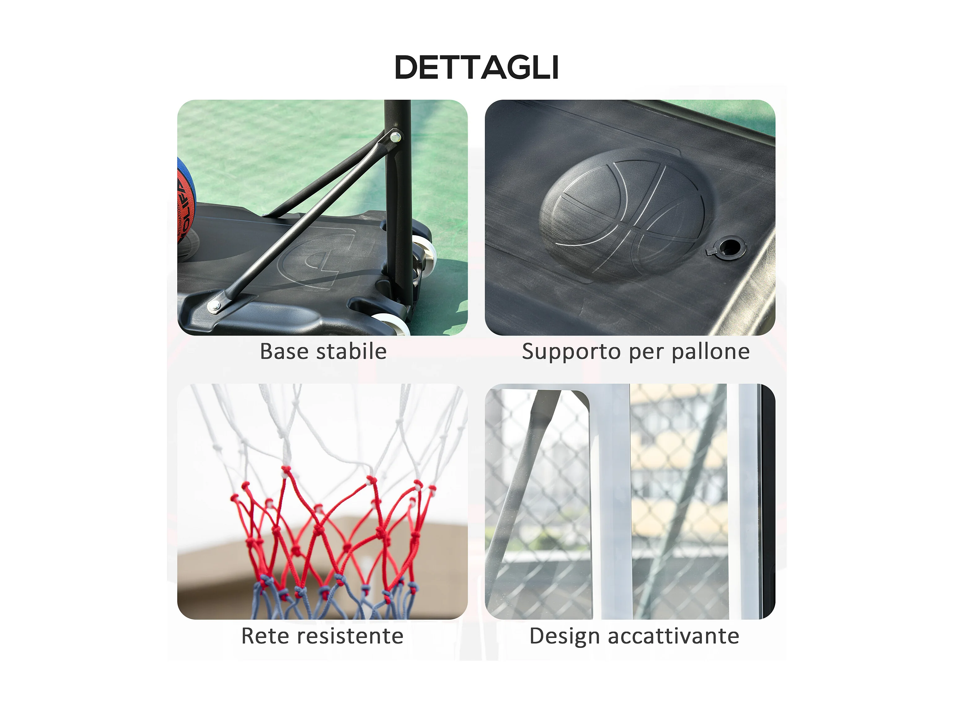 Canestro basket esterno regolabile 146-236cm ruote e base riempibile