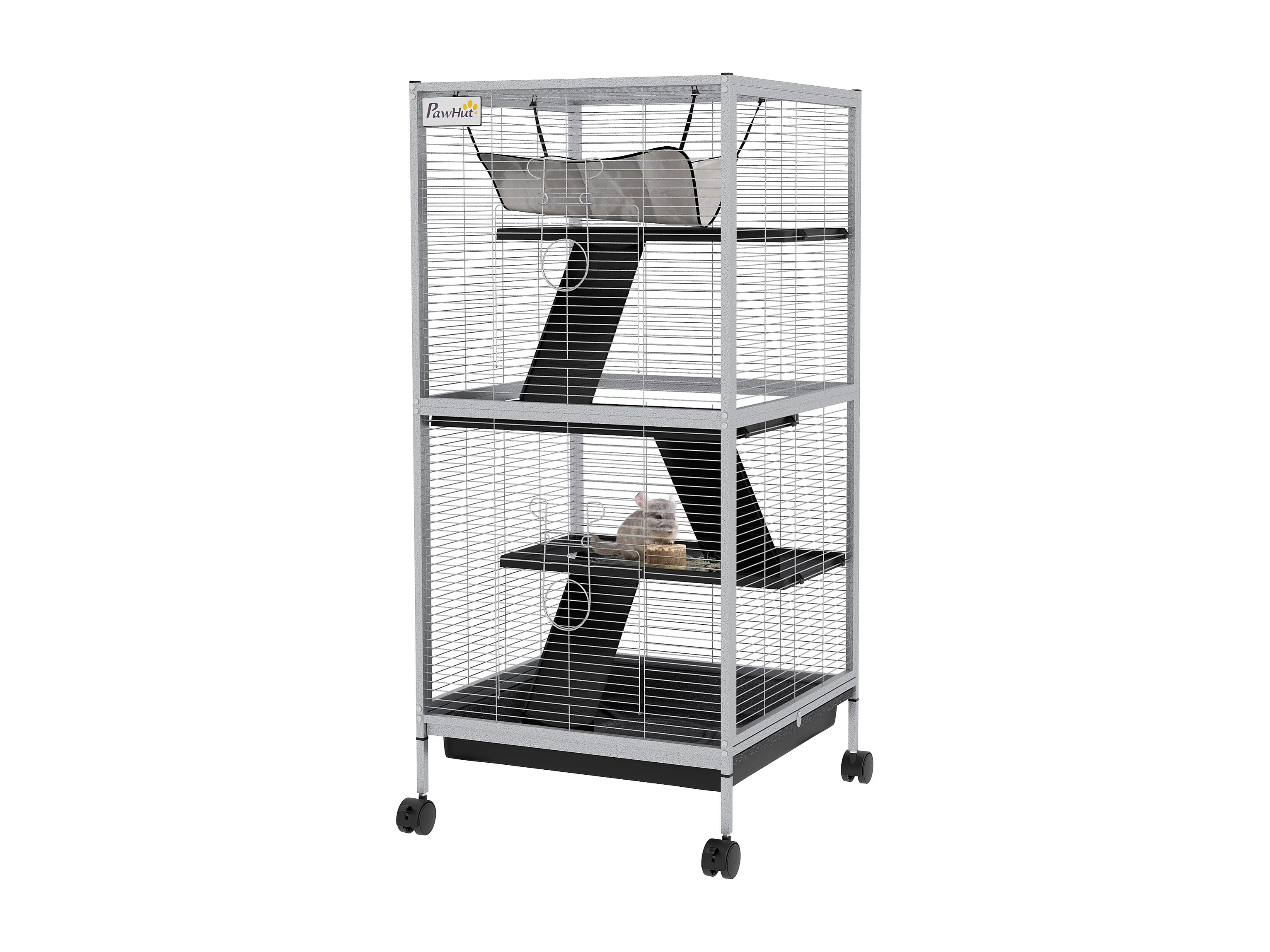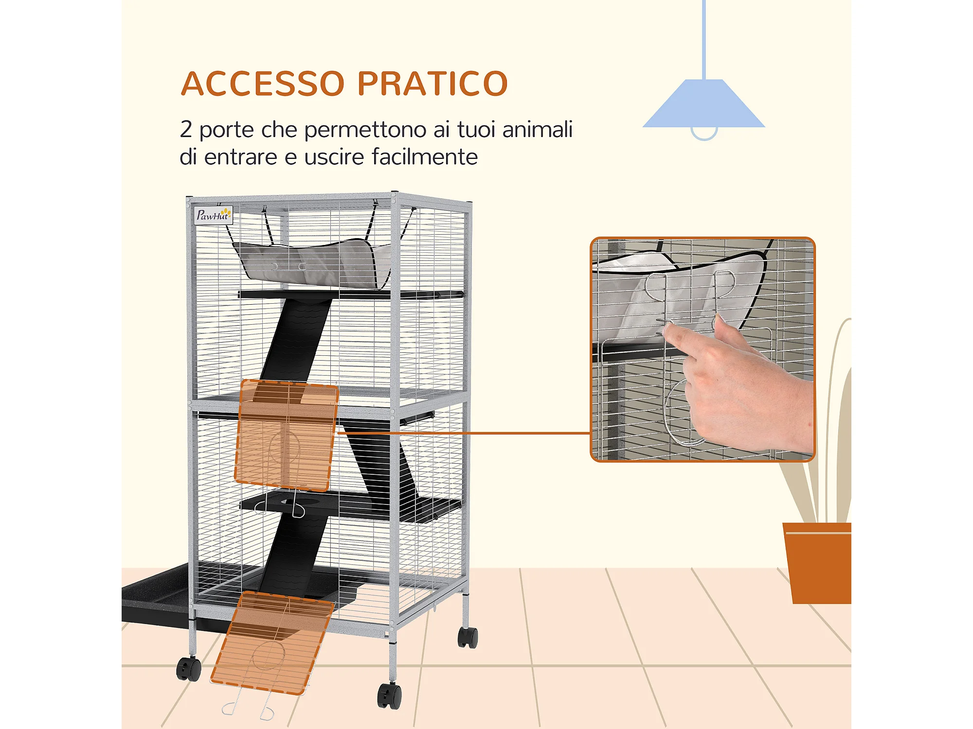Gabbia per conigli con 4 ingressi e amaca in acciaio e pp 80x52x128 cm