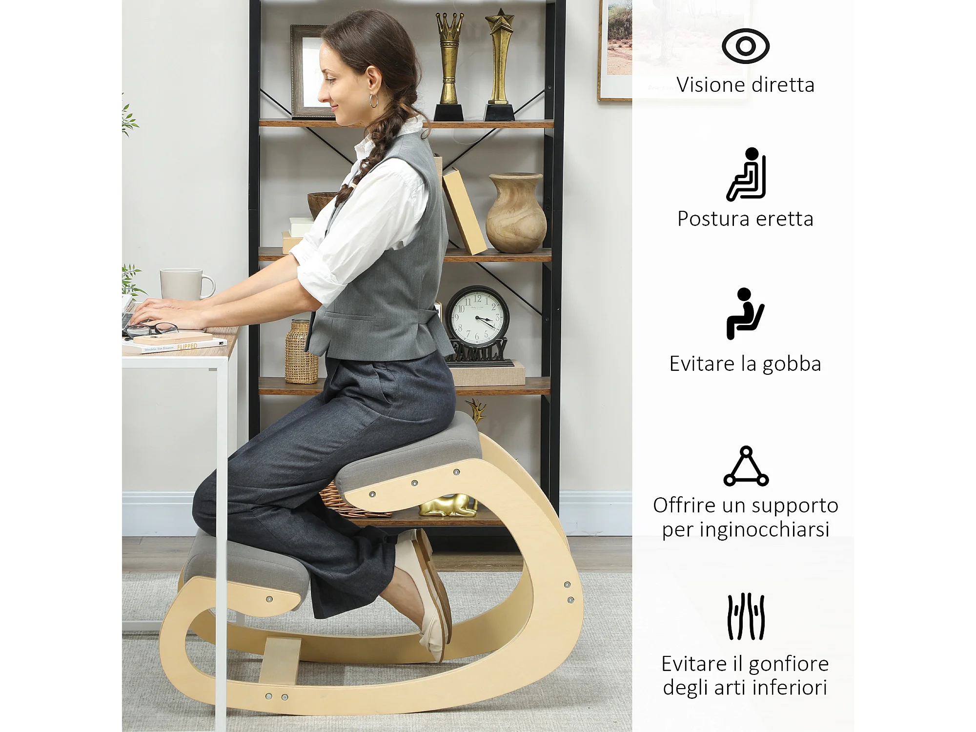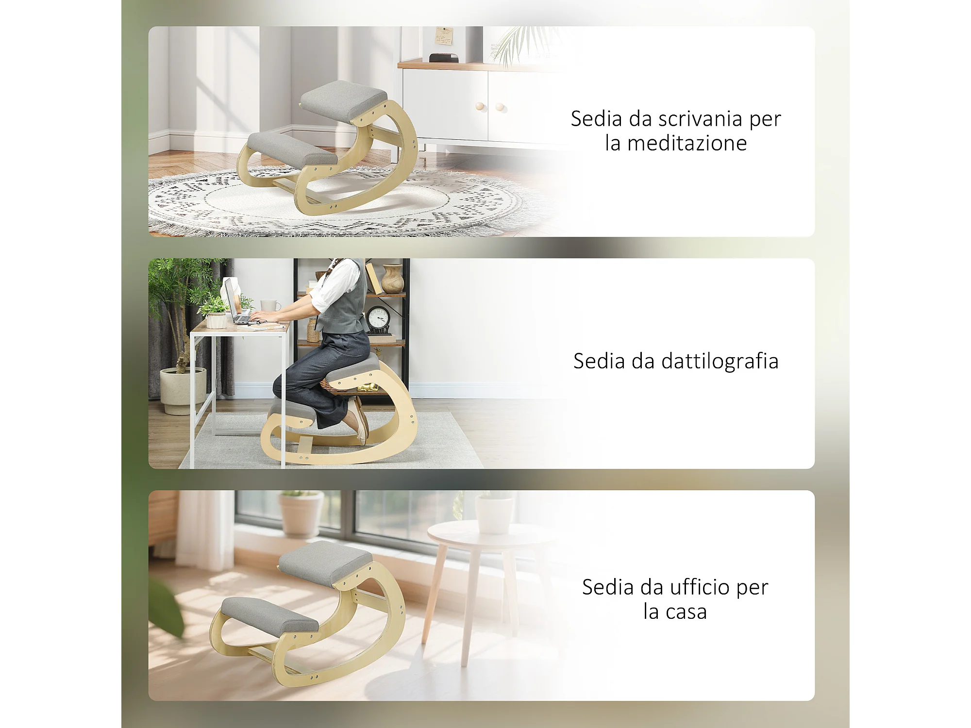 Sedia inginocchiatoio in tessuto effetto lino e legno grigio chiaro