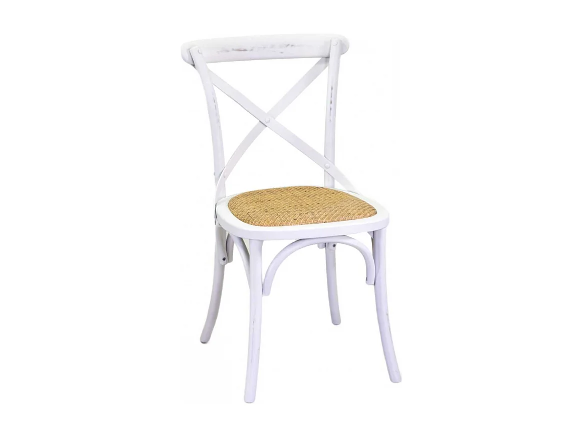 Sedia legno cross bianco antico seduta intreccio cm 51x55h46,5/89
