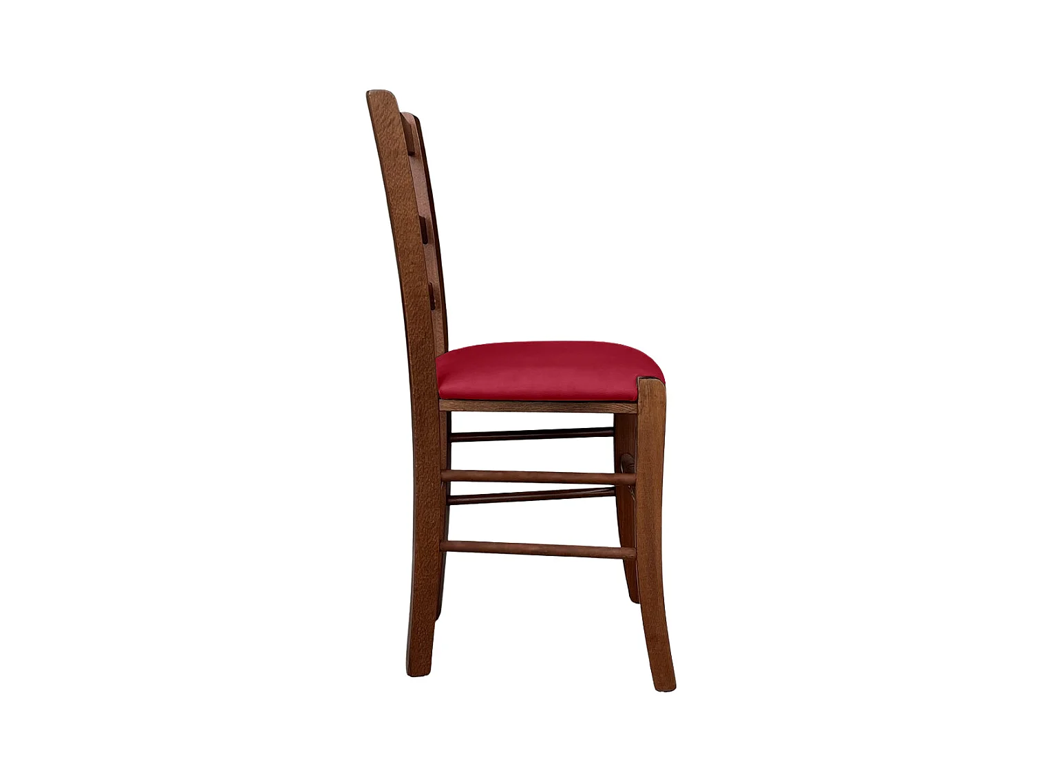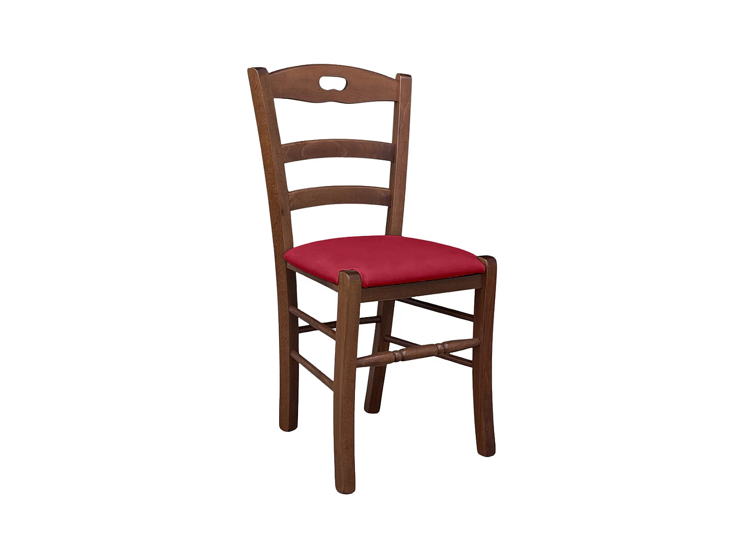 Sedia legno Loris noce scuro con seduta imbottita ecopelle rosso