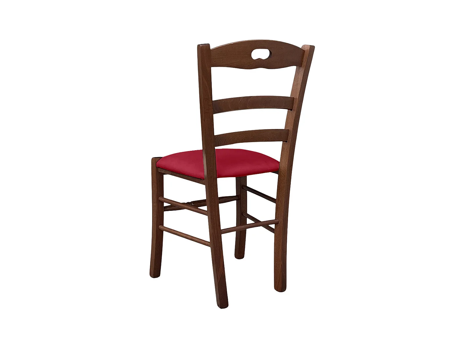 Sedia legno paesana noce chiaro con seduta imbottita rosso