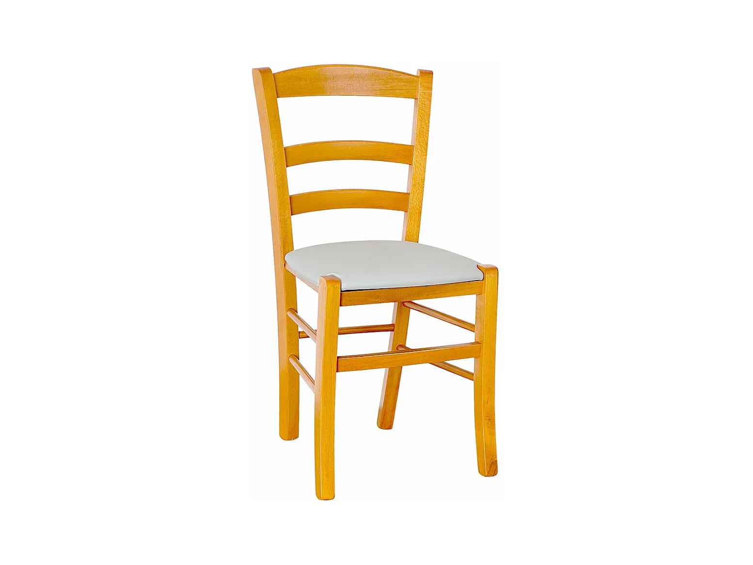 Sedia legno paesana noce chiaro con seduta similpelle beige