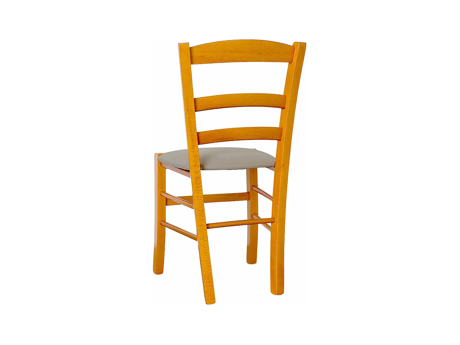 Sedia legno paesana noce chiaro con seduta similpelle beige