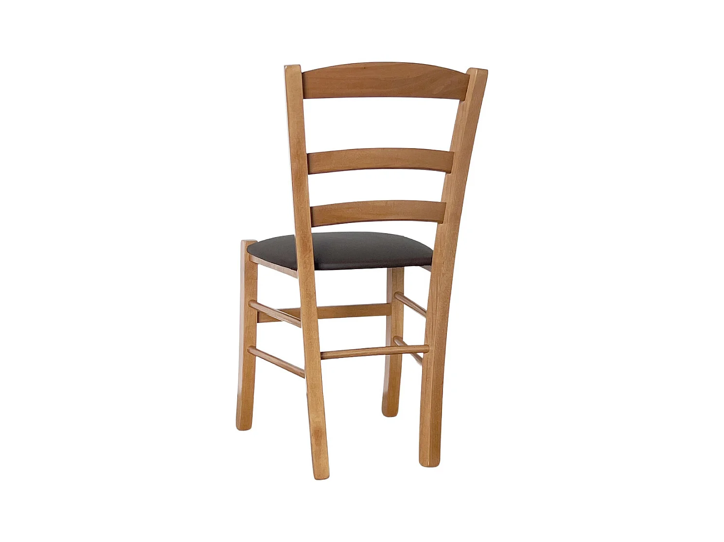 Sedia legno paesana noce chiaro con seduta imbottita marrone