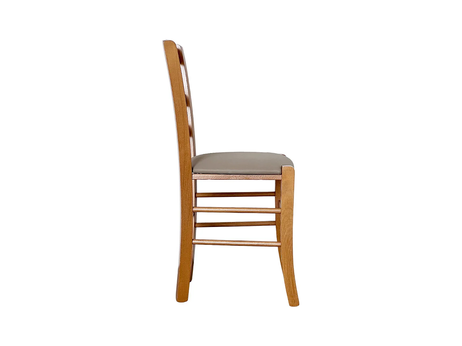 Sedia legno paesana noce chiaro con seduta imbottita similpelle tortora