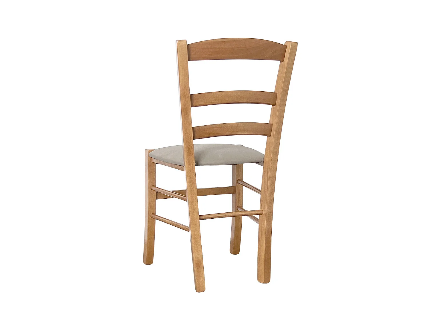Sedia legno paesana noce chiaro con seduta similpelle beige