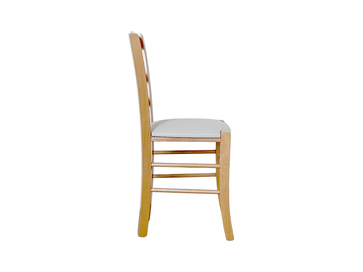 Sedia legno Loris noce chiaro con seduta imbottita ecopelle tortora