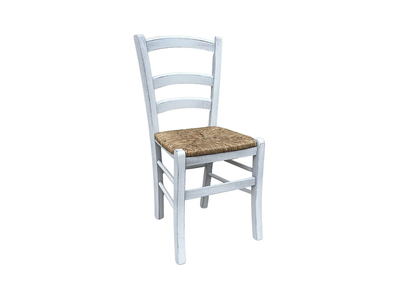 Sedia legno venezia anticata bianca con seduta in paglia palustre